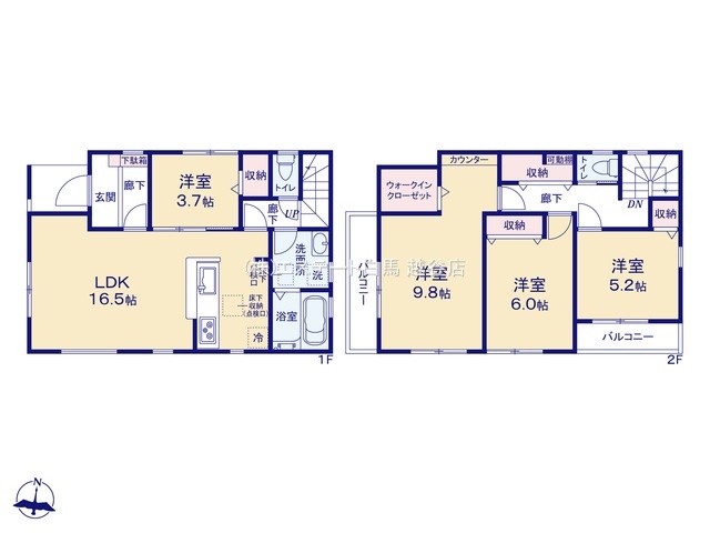 | 間取 | 4LDK (LDK16.5帖、洋室9.8帖、洋室6帖、洋室5.2帖、洋室3.7帖) | ||