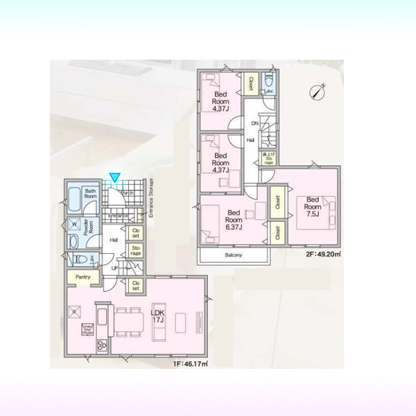 | 間取 | 4LDK (LDK17帖、洋室7.5帖、洋室6.37帖、洋室4.3帖、洋室4.3帖) | ||