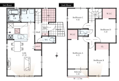 | 間取 | 4LDK (LDK17.3帖、洋室6.7帖、洋室6.1帖、洋室5.2帖、洋室4.5帖) | ||