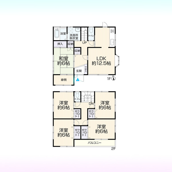 | 間取 | 5LDK (LDK12.5帖、和室6帖、洋室6帖、洋室6帖、洋室6帖、洋室6帖) | ||