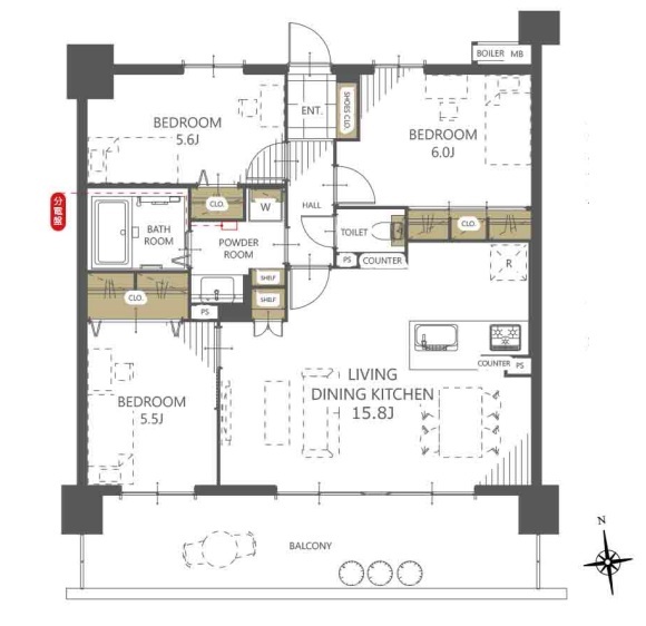 | 間取 | 3LDK (LDK15.8帖) | ||
