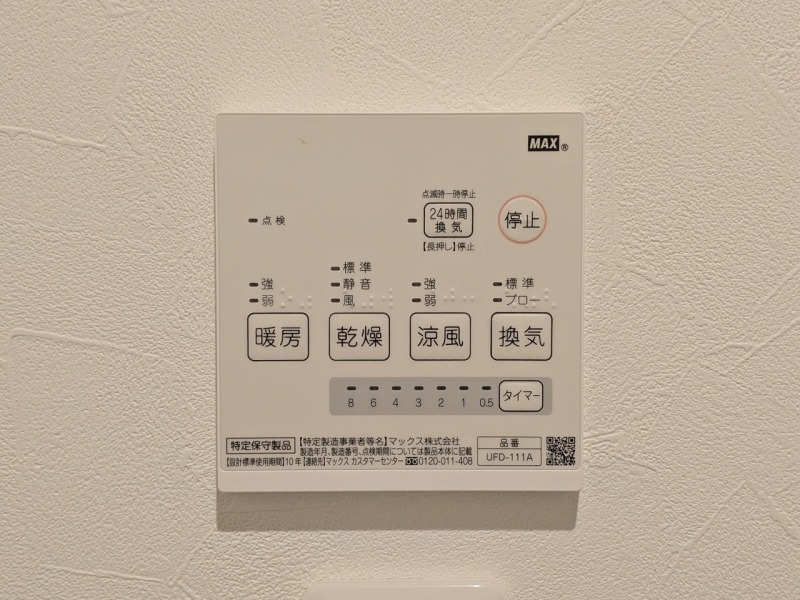 ・浴室乾燥機付き。雨の日のお洗濯も快適にこなせる。