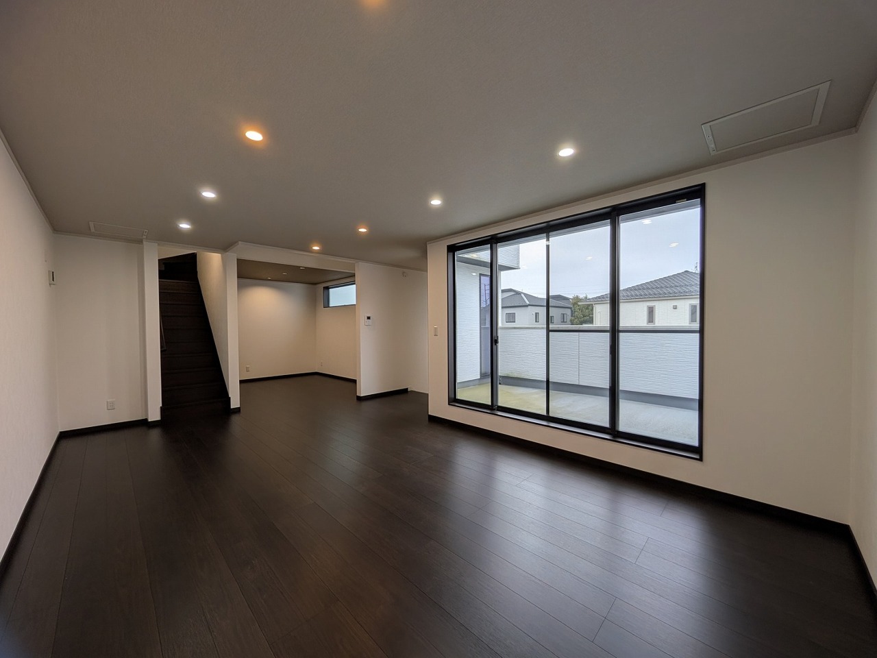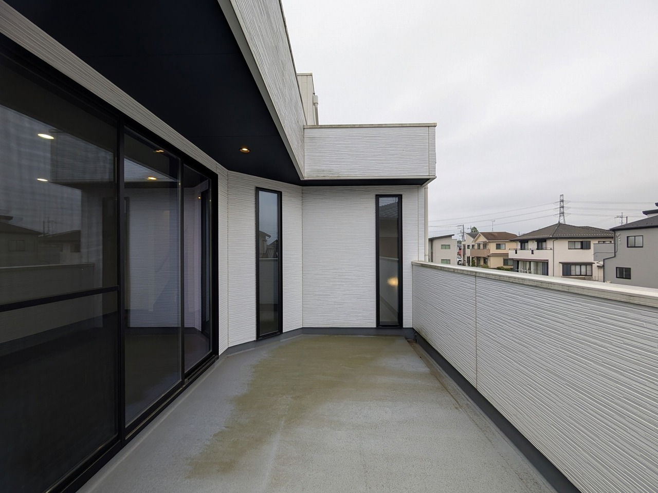 低層住居専用地域ならではのベランダの光景。辺りには高い建物がありません。