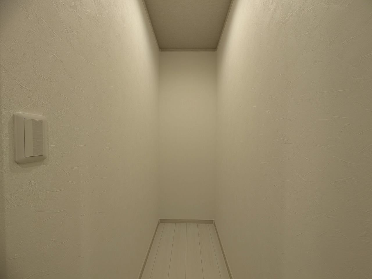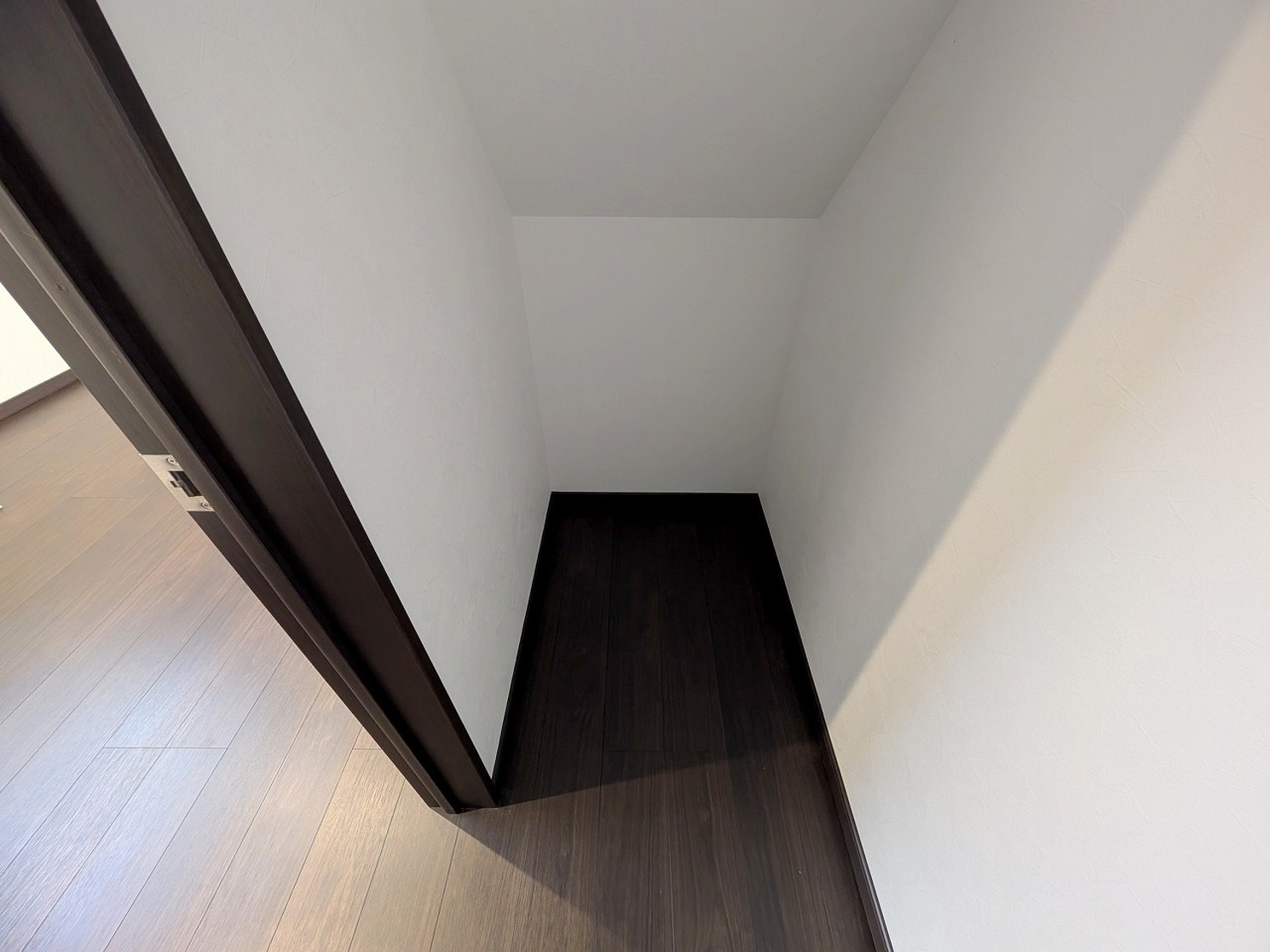 部屋と部屋の隙間をうまく使ったスリムな収納スペース。