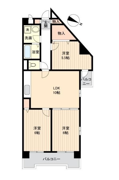 | 間取 | 3LDK (LDK10帖、洋室6帖、洋室6帖、洋室5.5帖) | ||