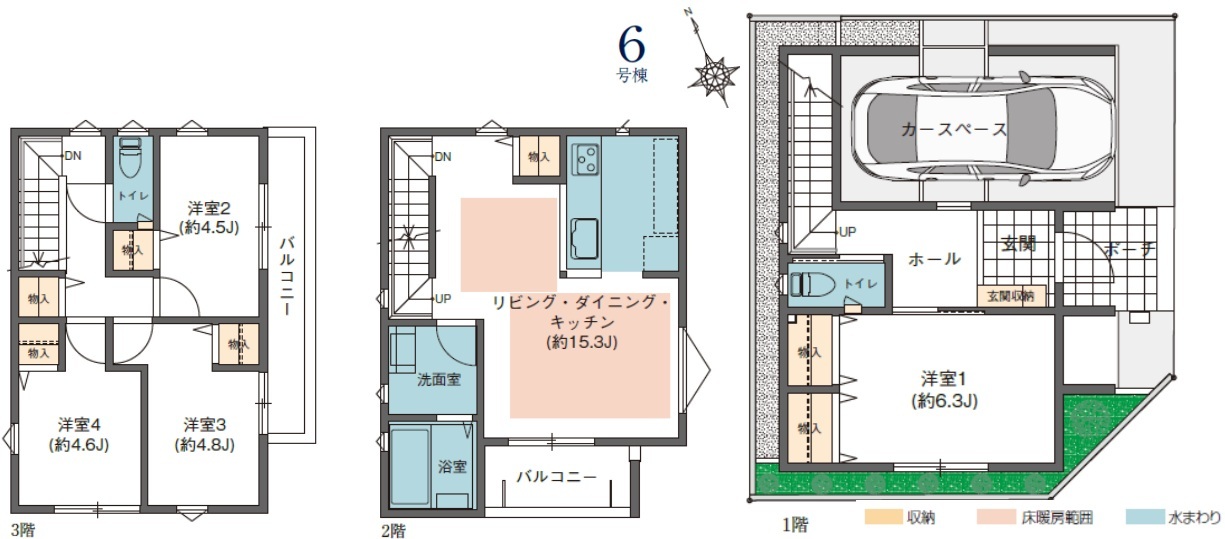| 間取 | 4LDK (LDK15.3帖、洋室6.3帖、洋室4.8帖、洋室4.6帖、洋室4.5帖) | ||