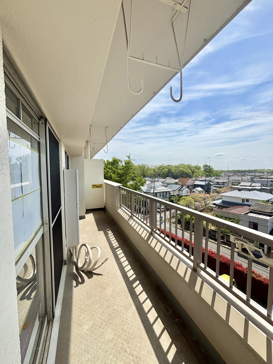 陽ざしが差込む明るいバルコニー。奥行きのあるバルコニーはお洗濯時に助かります。