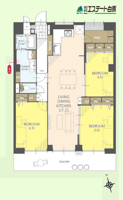 | 間取 | 3LDK (洋室6.3帖、洋室6帖、洋室4.5帖、LDK17.7帖) | ||