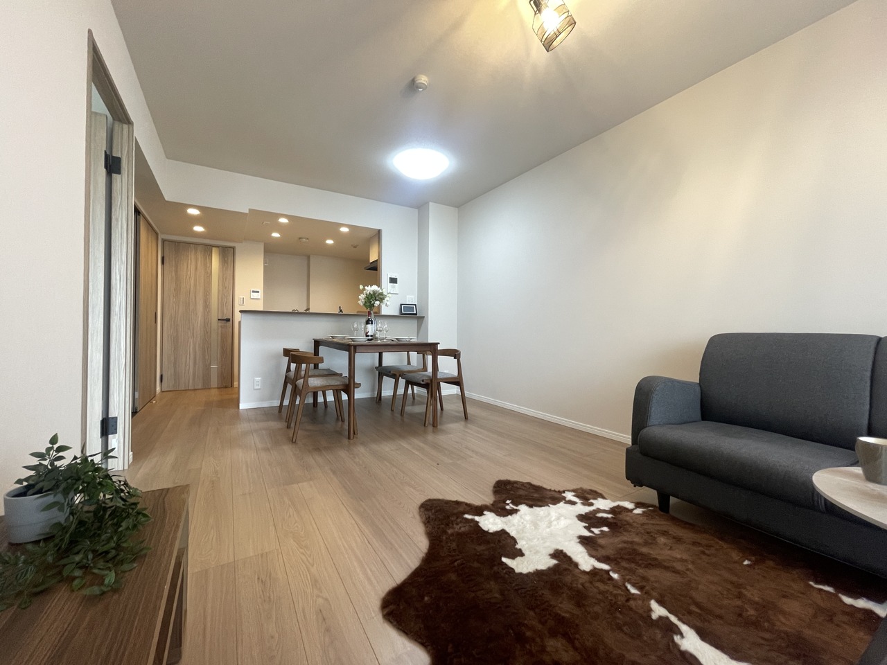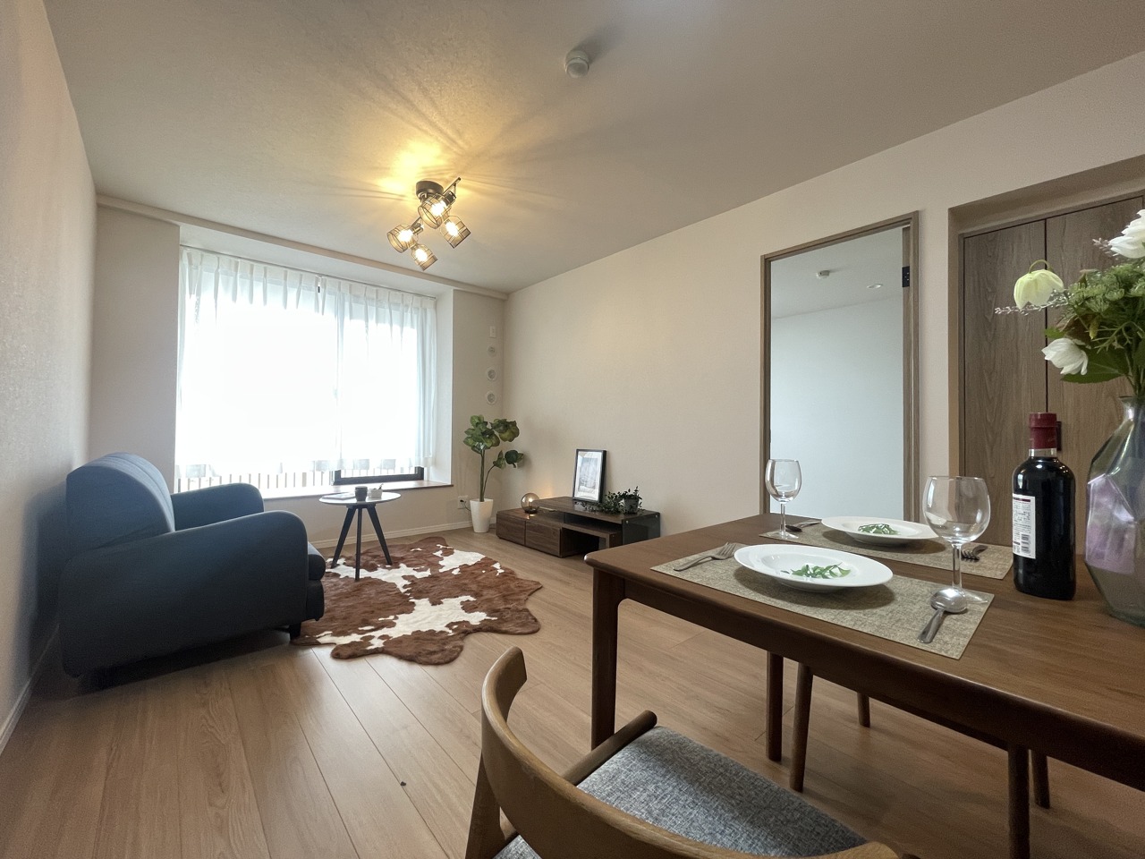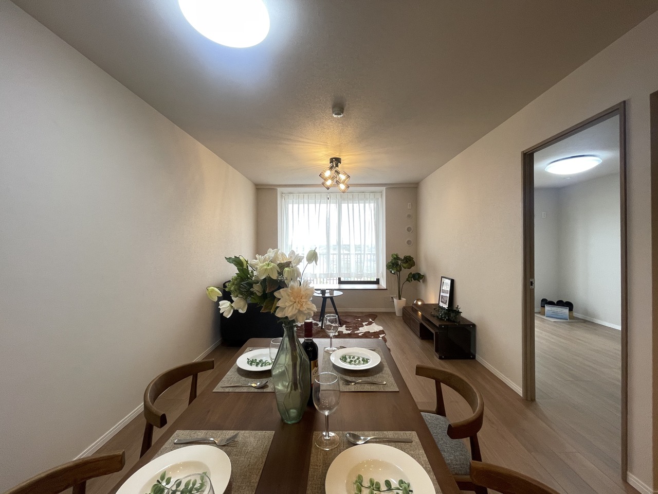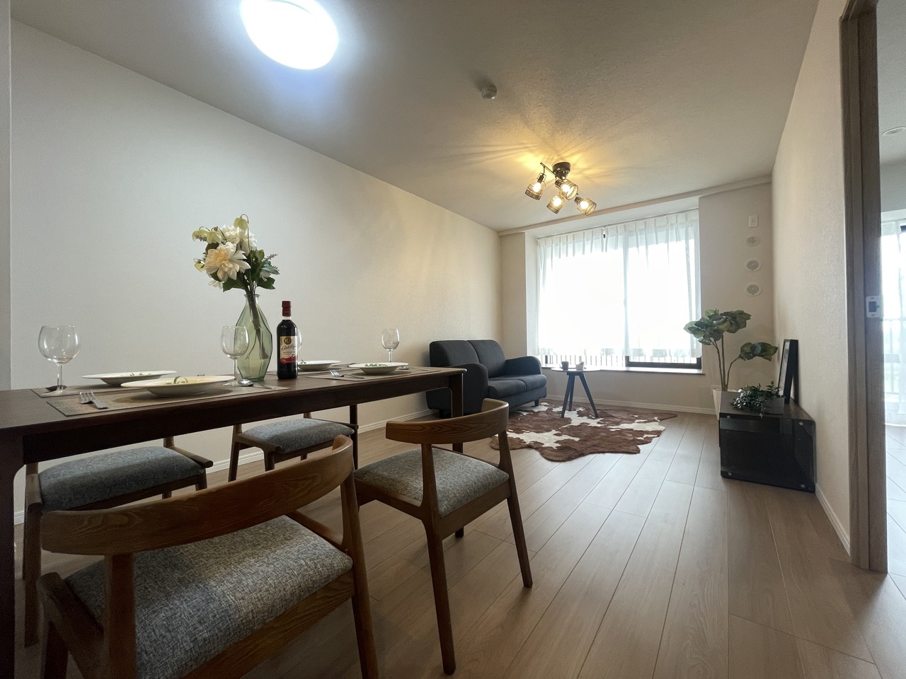大画面TVの配置も可能なワイドリビング。ホームステージングで生活のイメージが付きやすいです。