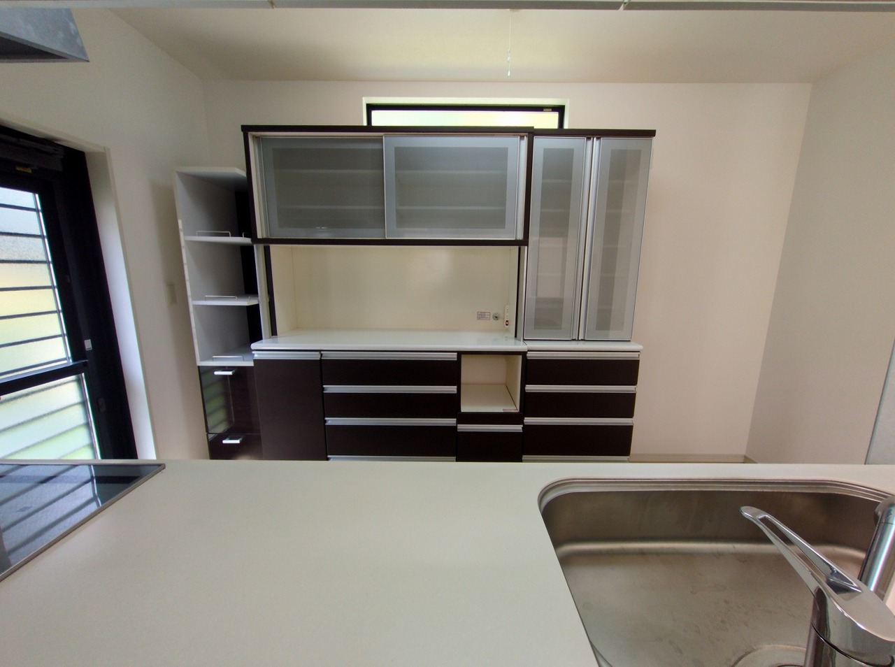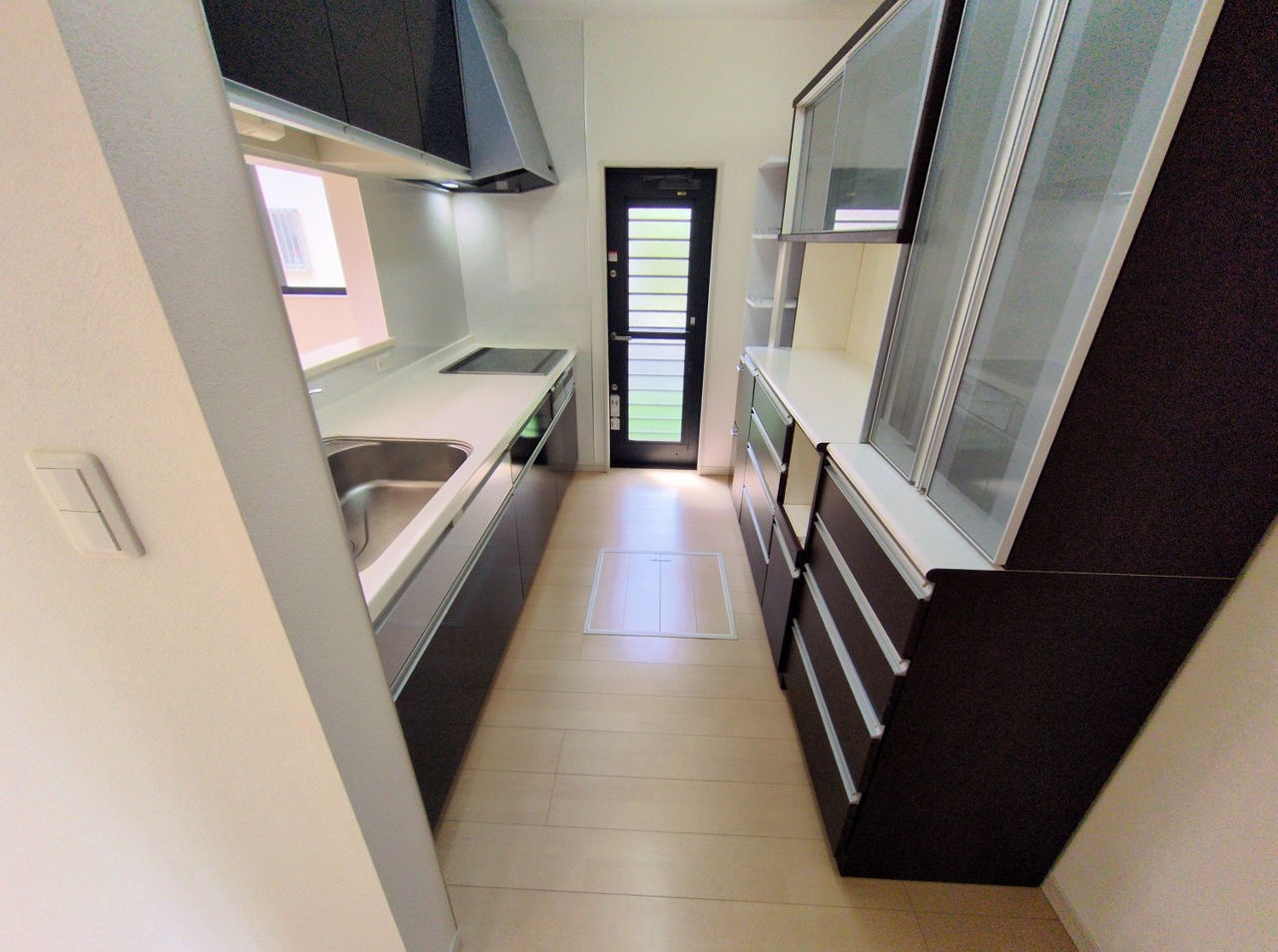 キッチン裏の空間もしっかり確保。カップボードも大きなものを置けそうです。