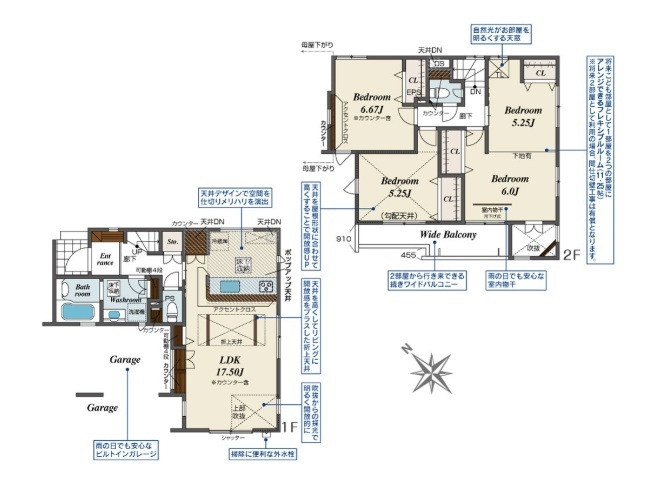 | 間取 | 3LDK (LDK17.5帖、洋室6.67帖、洋室6帖、洋室5.25帖、洋室5.25帖) | ||
