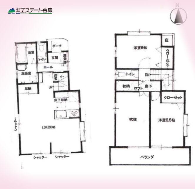 | 間取 | 2LDK (LDK20帖、洋室6.5帖、洋室6帖) | ||