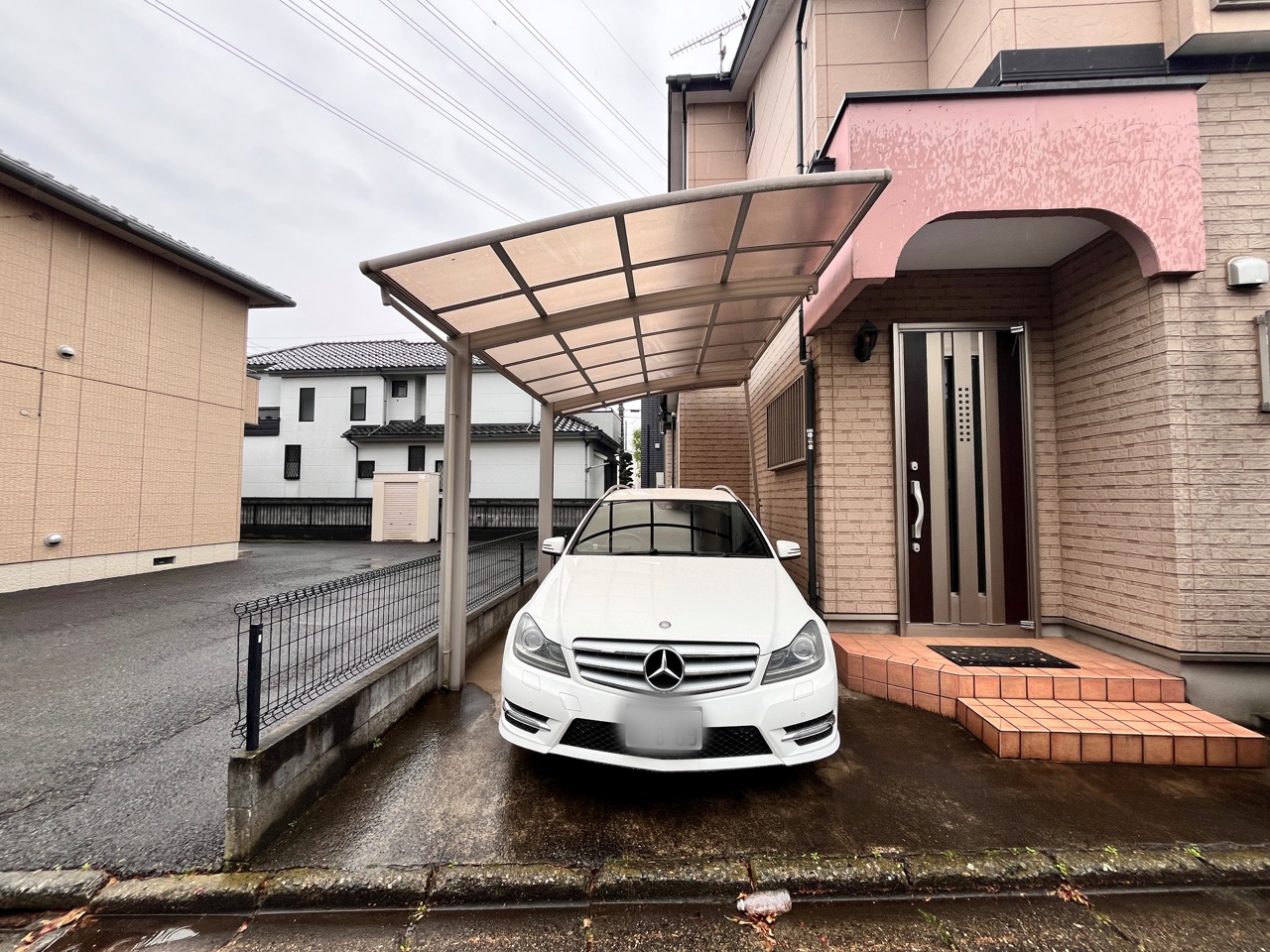 会ポート付きカースペースは1台駐車できます。車庫の出し入れのしやすさなど、実際に現地にてご確認ください。