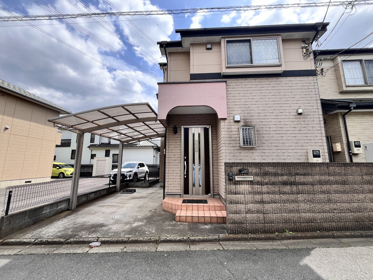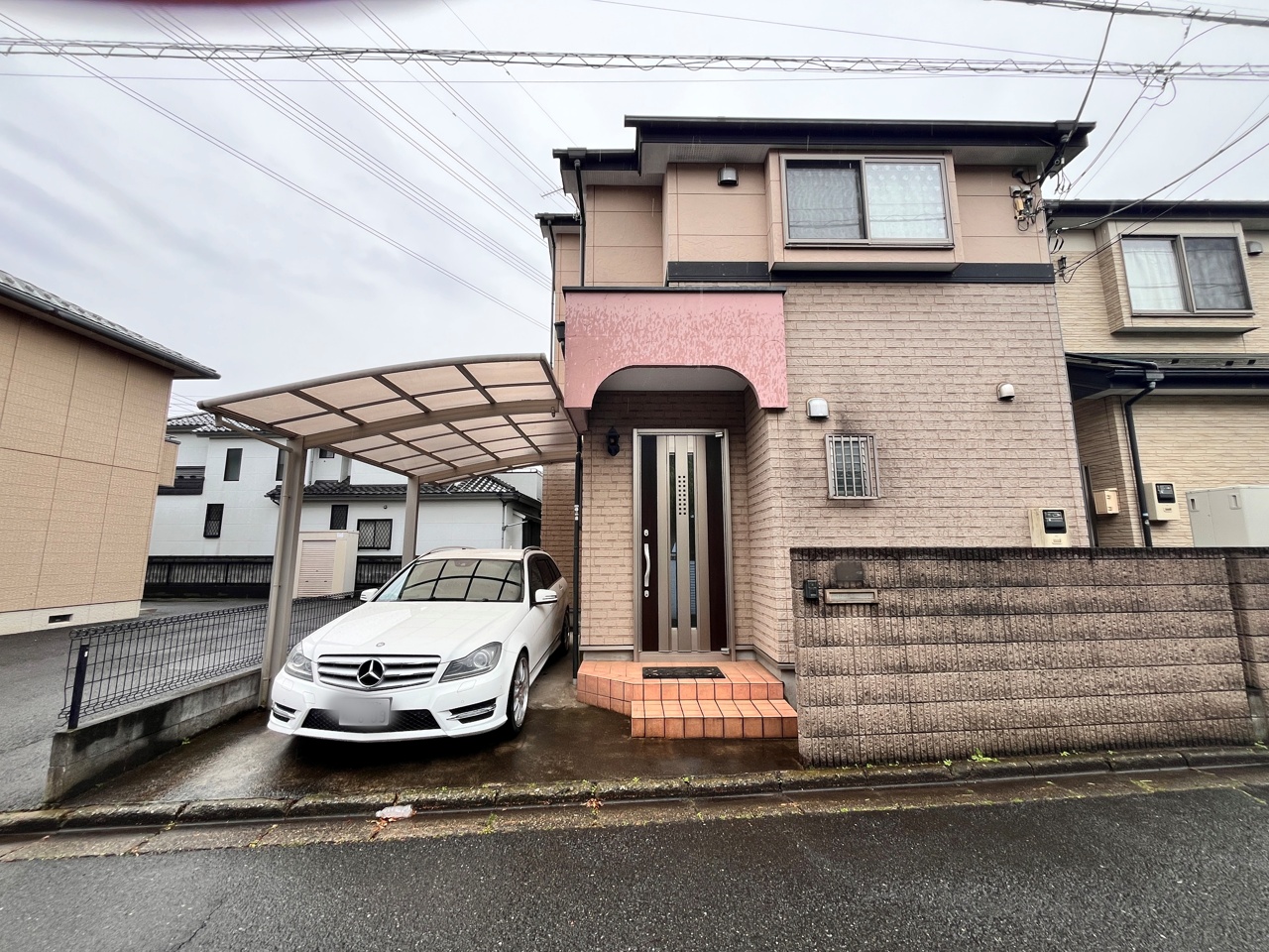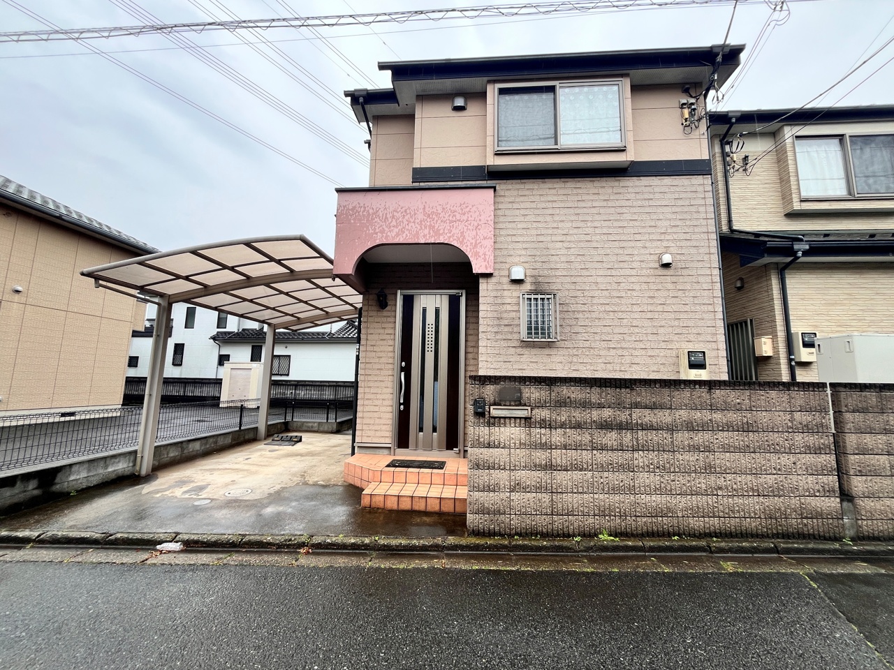玄関周りの柔らかな色合いが、訪れる人を温かく迎え入れます。カーポートは雨の日でも安心な空間を作り出し、穏やかな日常を予感させます