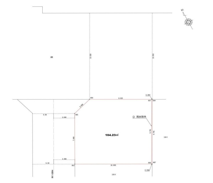 | 土地面積 | 104.23m² 公簿 (私道200.29m²別に有、私道持分比率:3/24) | ||