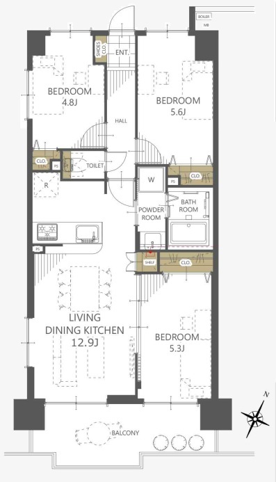 | 間取 | 3LDK (LDK12.9帖) | ||