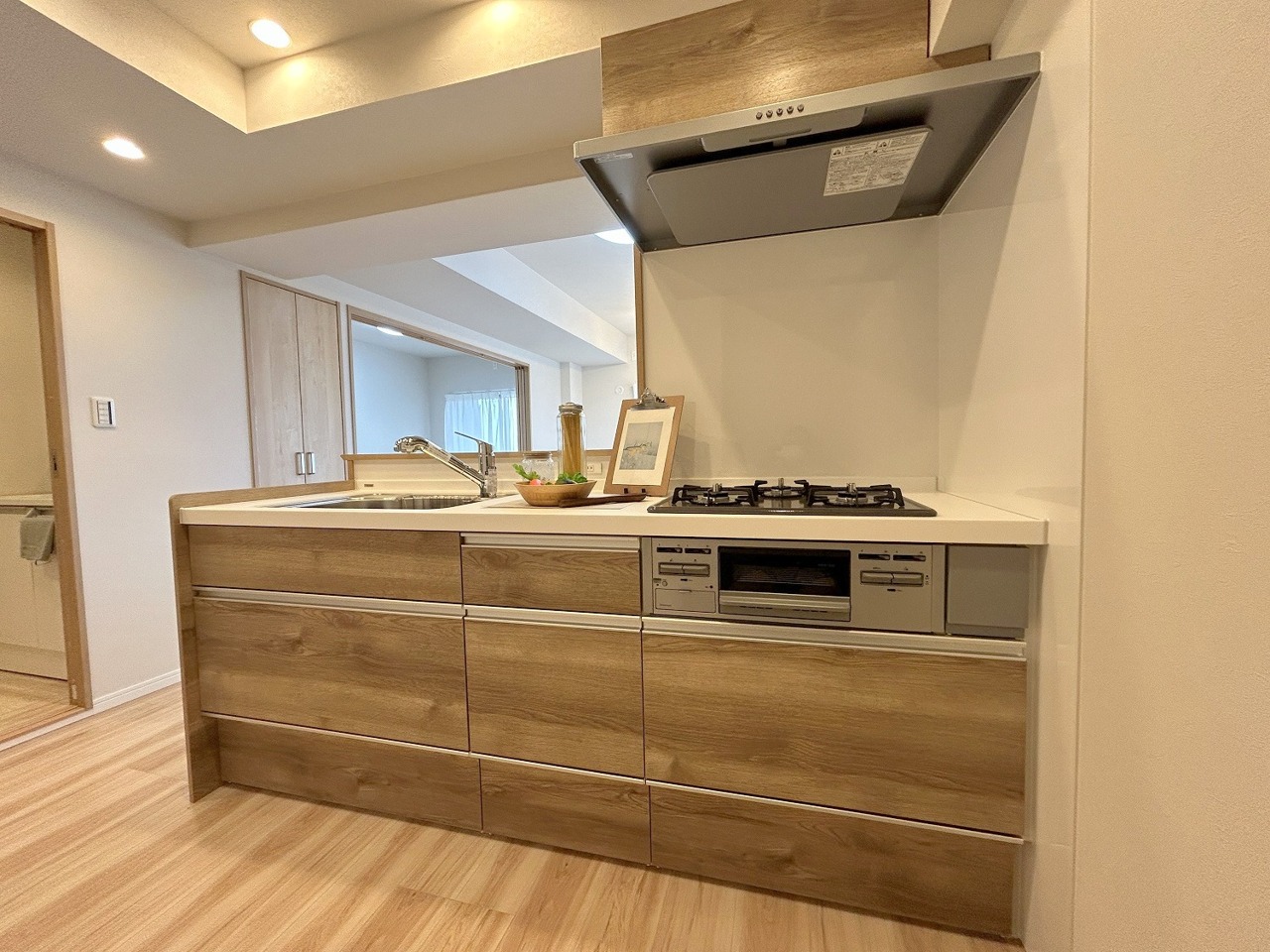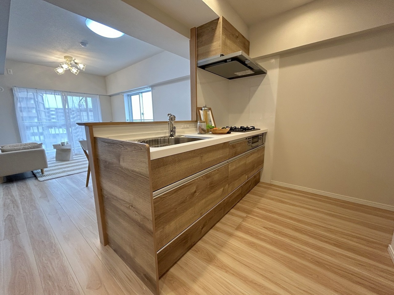 キッチン、床材、クロスが新品に交換済み。中古ながらも築年数を感じさせません。