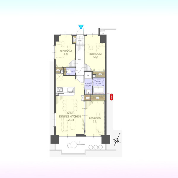 | 間取 | 3LDK (LDK12.9帖、洋室5.6帖、洋室5.3帖、洋室4.8帖) | ||