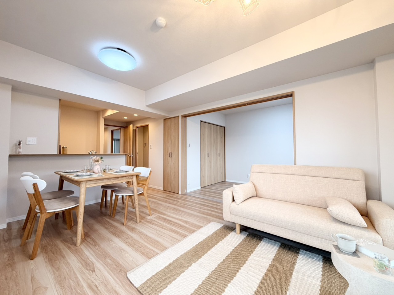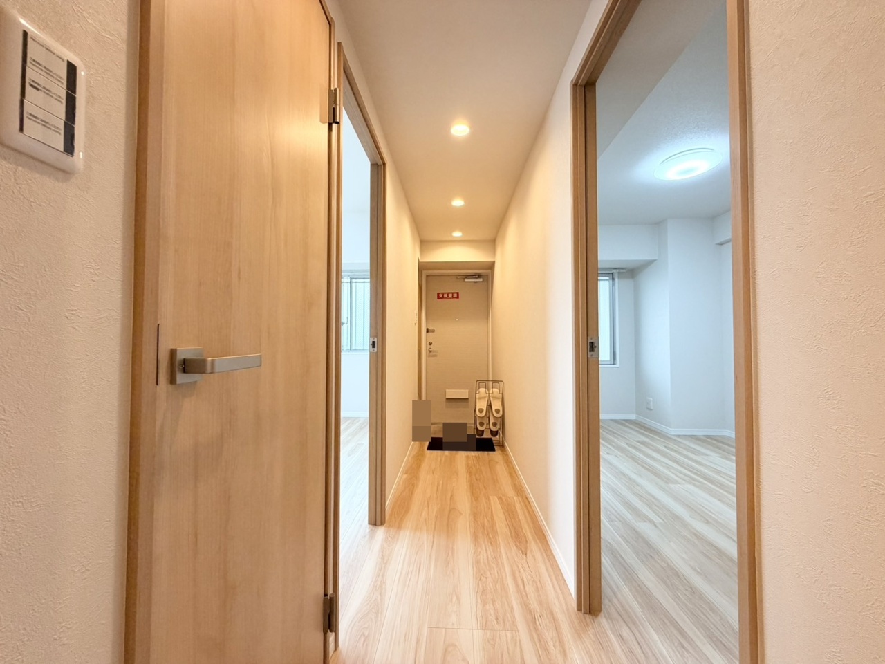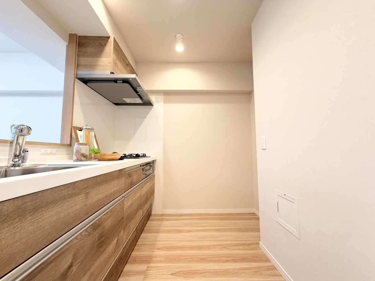 明るい木目調の扉が、空間に温もりと広がりをもたらします。