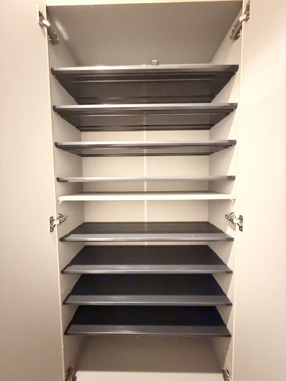 整然とした棚が、空間に心地よいリズムを生み出しています。