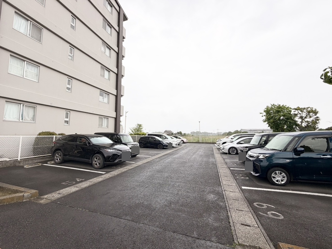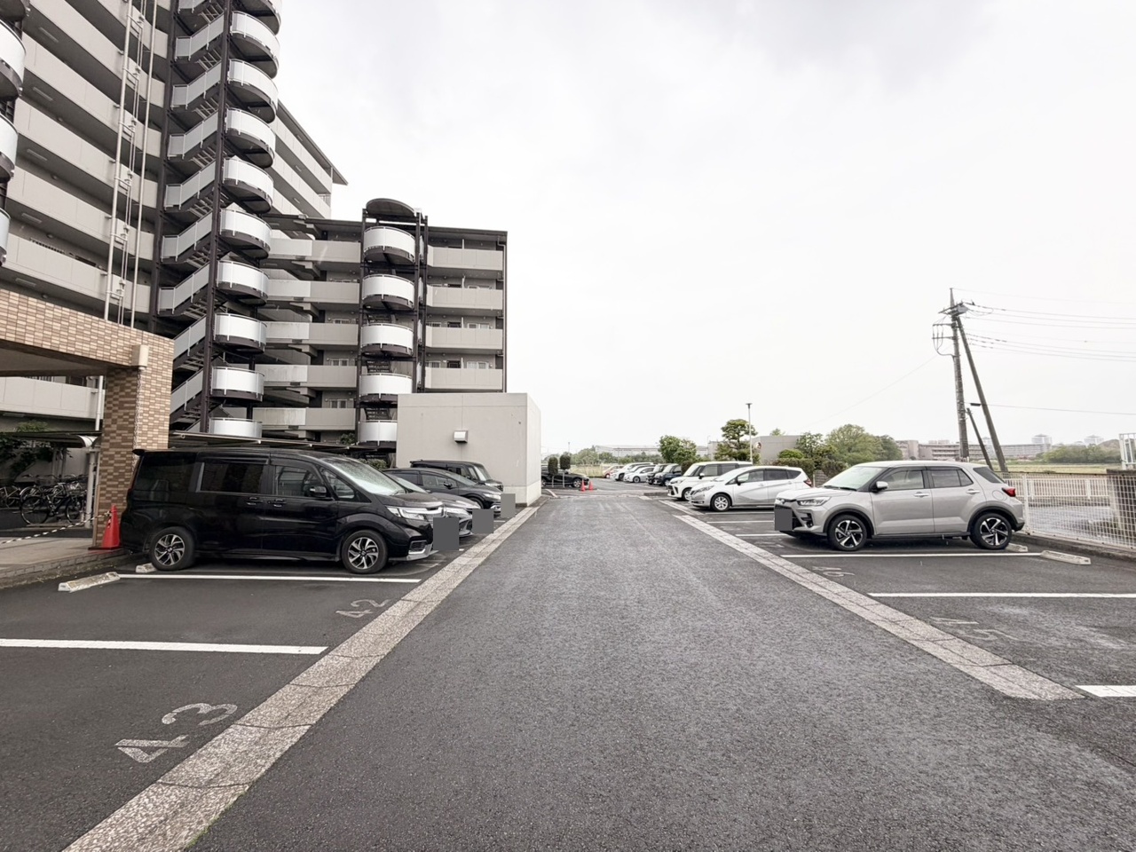 整然と並ぶ駐車場は、安心感と快適な暮らしを予感させます。