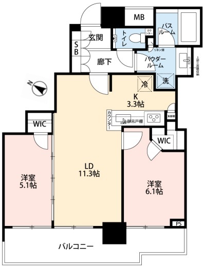 | 間取 | 2LDK (LD11.3帖、K3.3帖、洋室6.1帖、洋室5.1帖) | ||