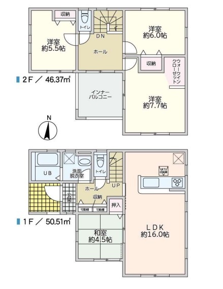 | 間取 | 4LDK (LDK16帖、和室4.5帖、洋室7.7帖、洋室6帖、洋室5.5帖) | ||