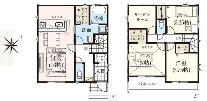 | 間取 | 3LDK + サービスルームあり (LDK16帖、洋室7帖、洋室5.75帖、洋室5.25帖) | ||