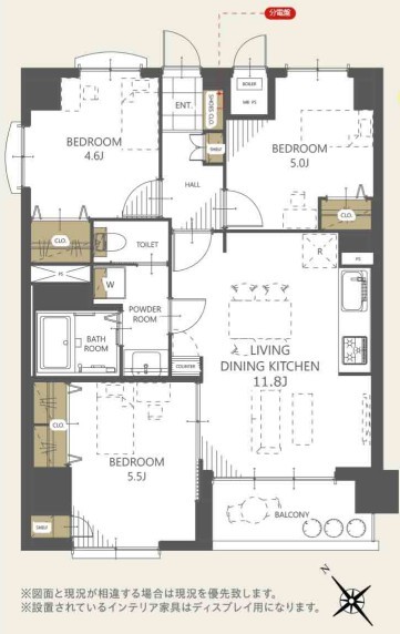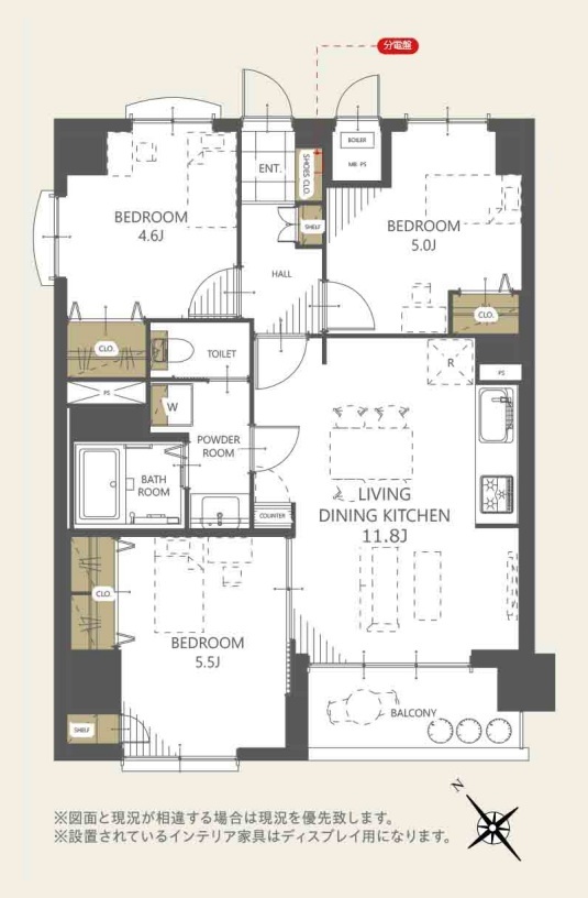 | 間取 | 3LDK (LDK11.8帖、洋室5.5帖、洋室5.0帖、洋室4.6帖) | ||