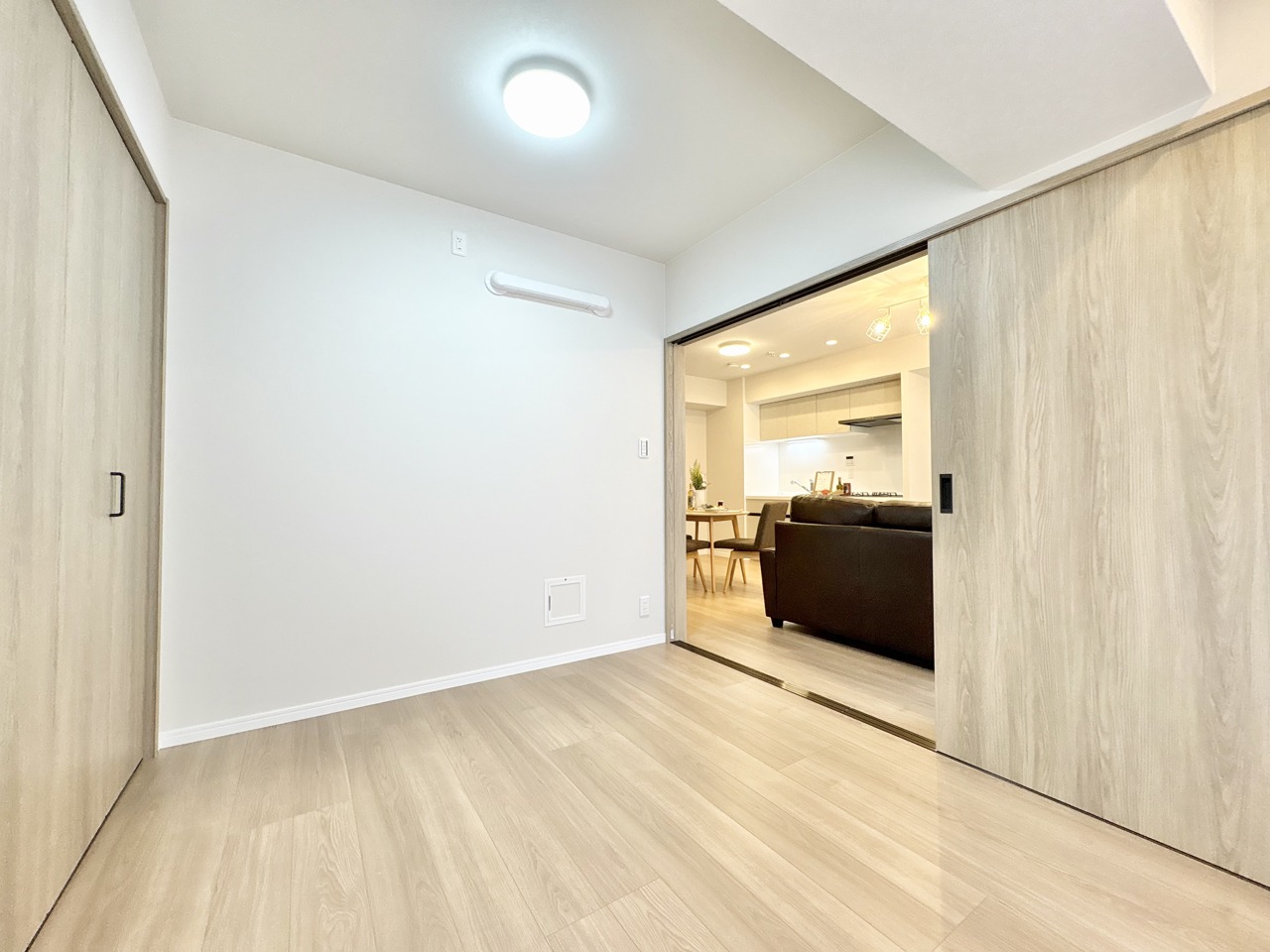 落ち着いた木目調のフローリングに、自然な光が心地よい空間