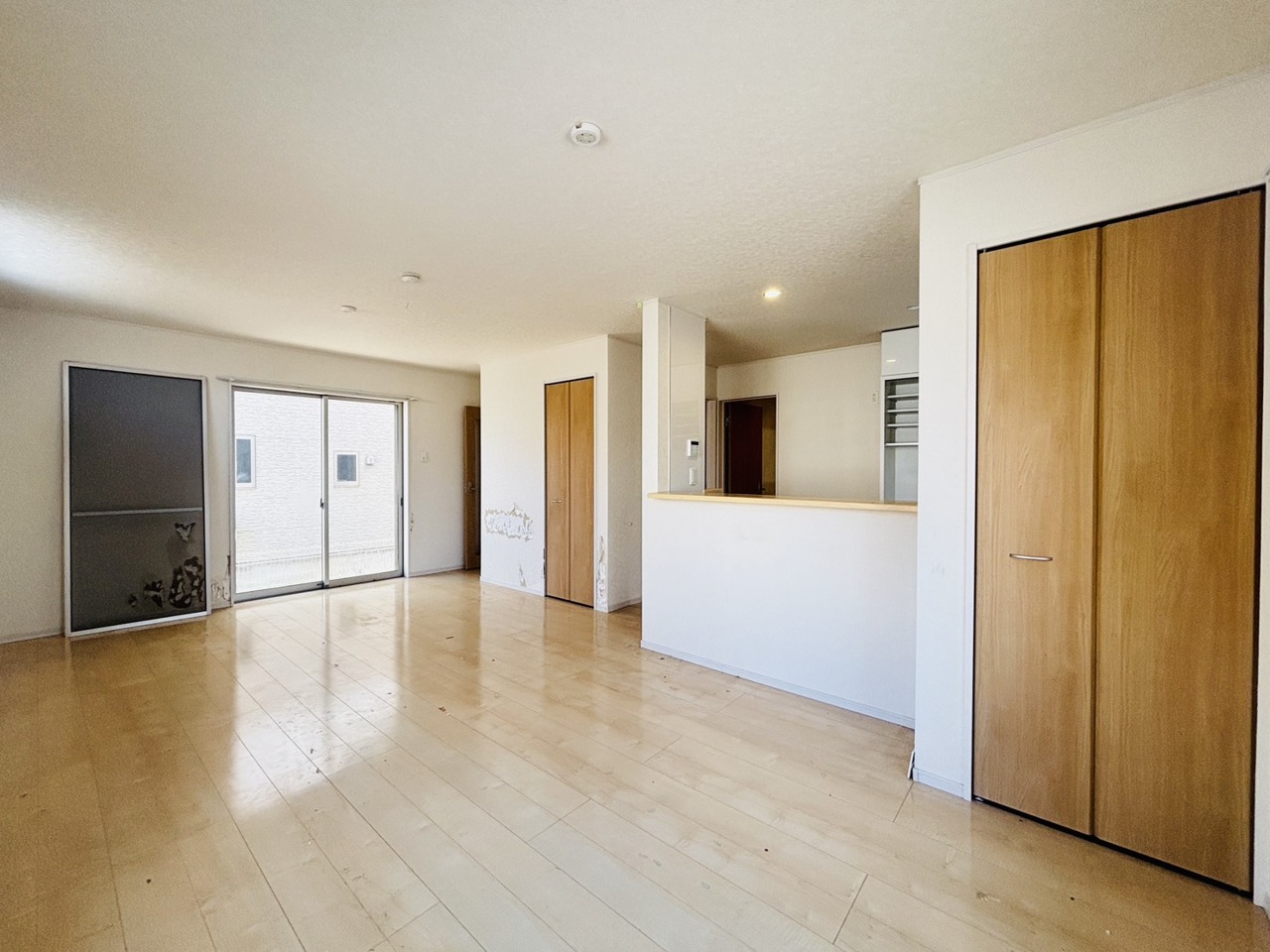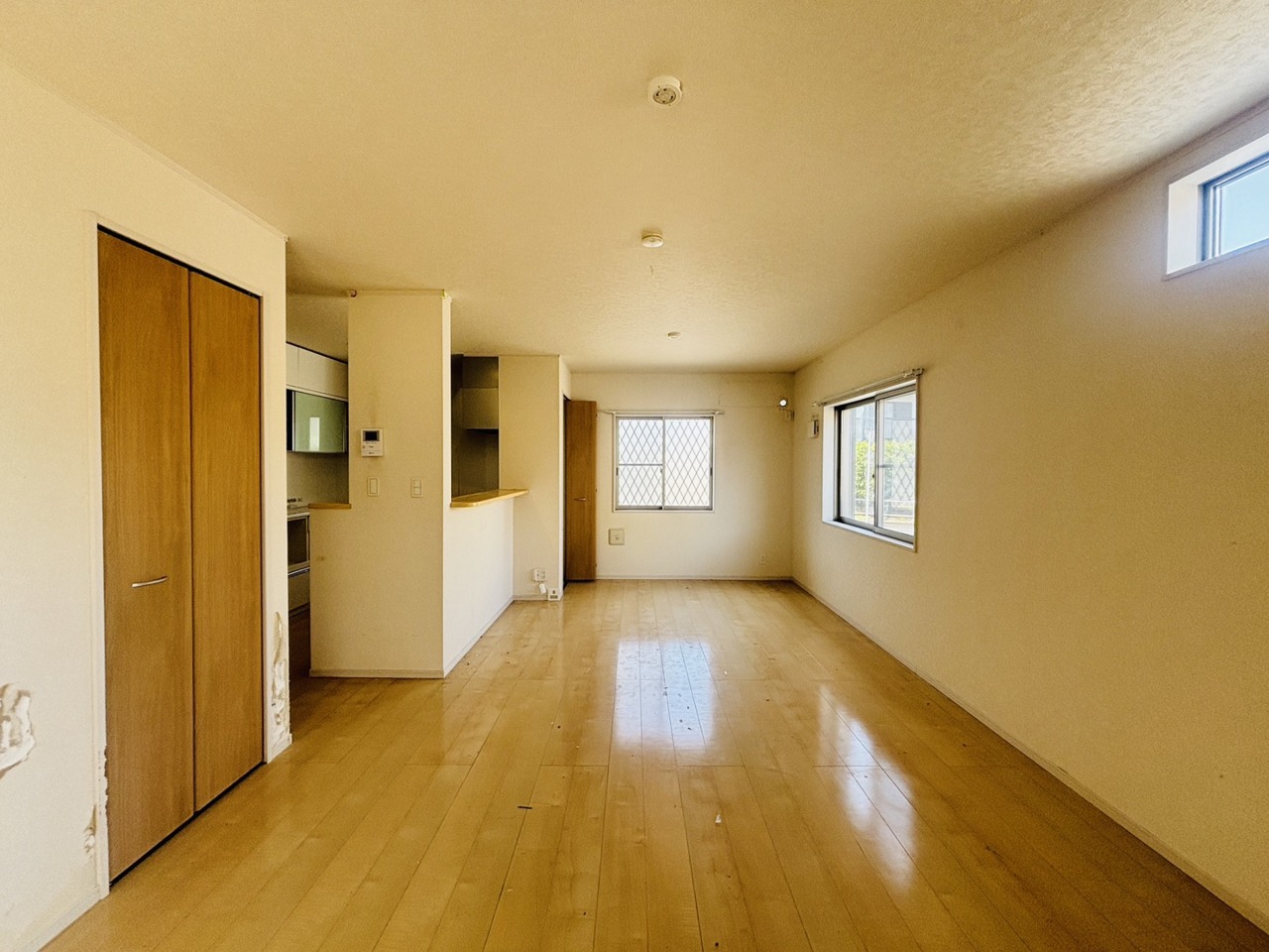 大きな開口部から明るい光が差し込む、日中の室内の明るさがこの部屋の魅力です。