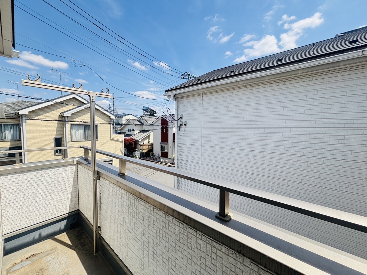 陽ざしが差込む明るいバルコニー。奥行きのあるバルコニーはお洗濯時に助かります。