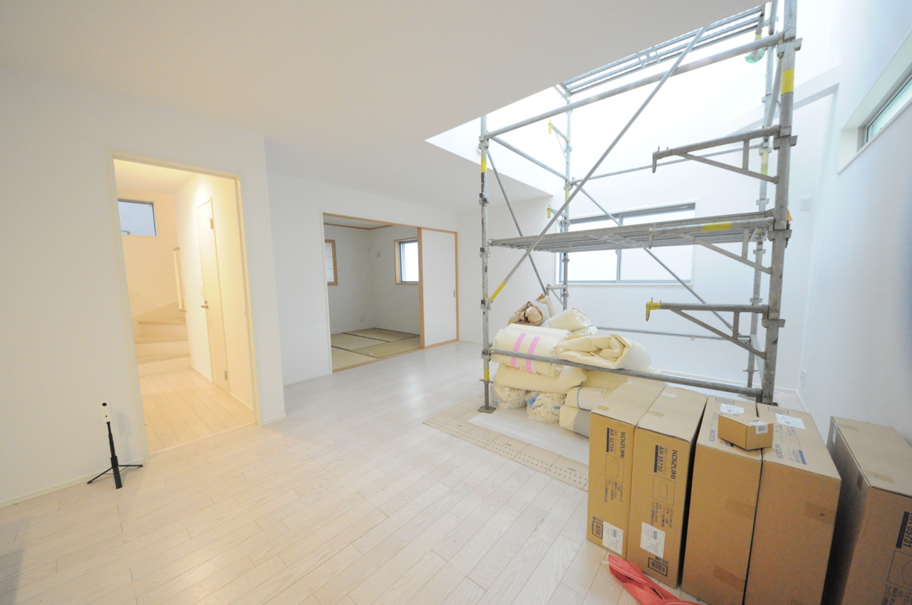 吹抜けで明るいリビングとウォークインが2カ所ある使い勝手の良い間取りです。