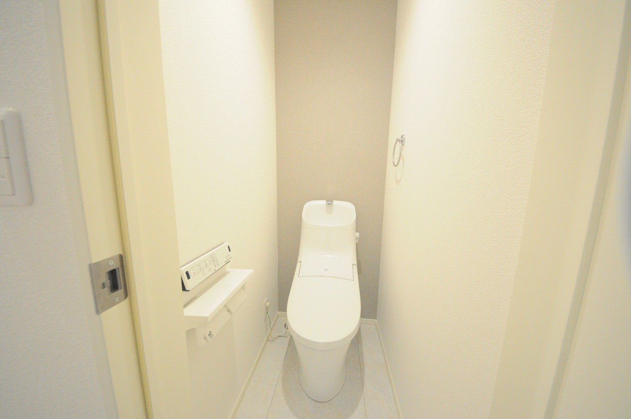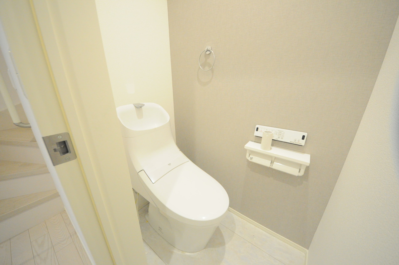 1.2階にそれぞれトレイがございます。朝の混雑時に分散して利用できるほか、ゲスト用としても使い分けることもできます。