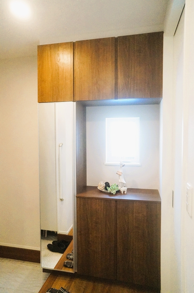 家族の履物が全部しまえる、ワイドな玄関収納。