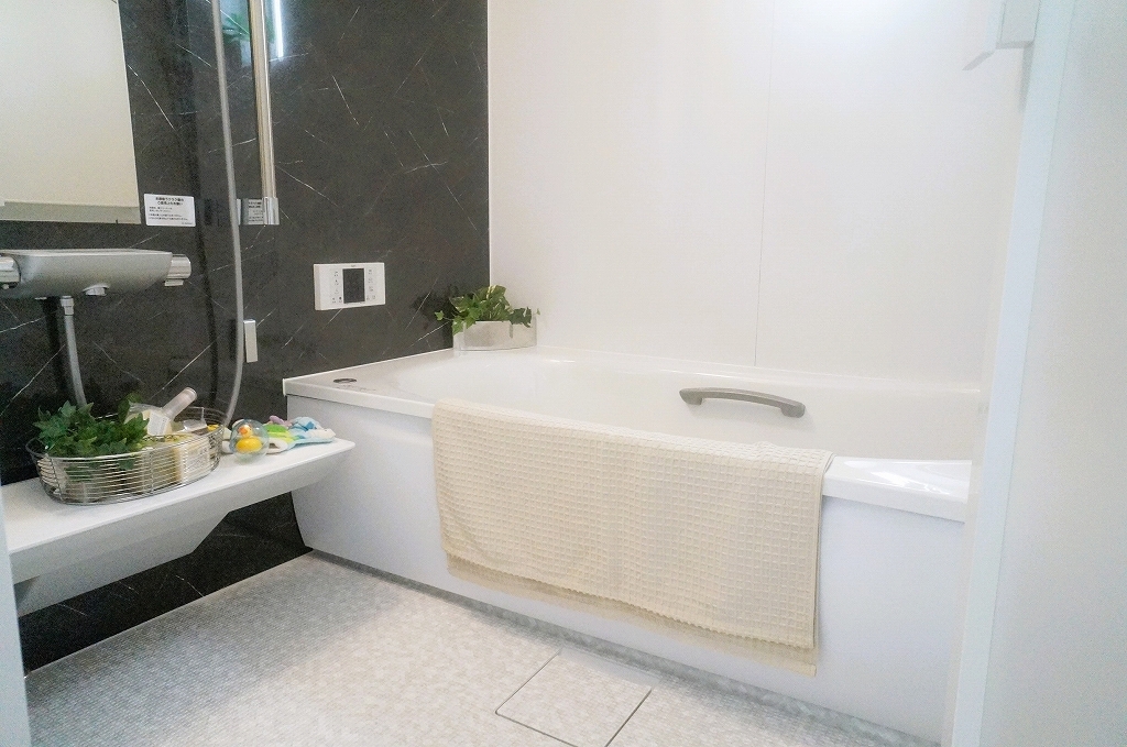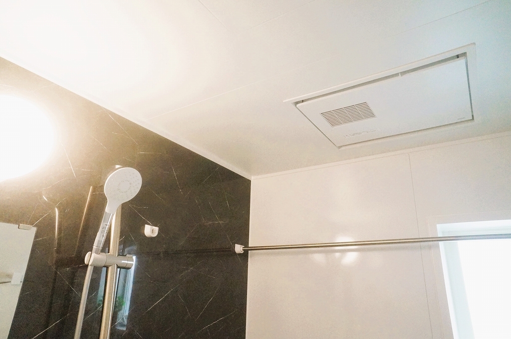 バスユニット1坪タイプ、浴室乾燥機、手すり付き。