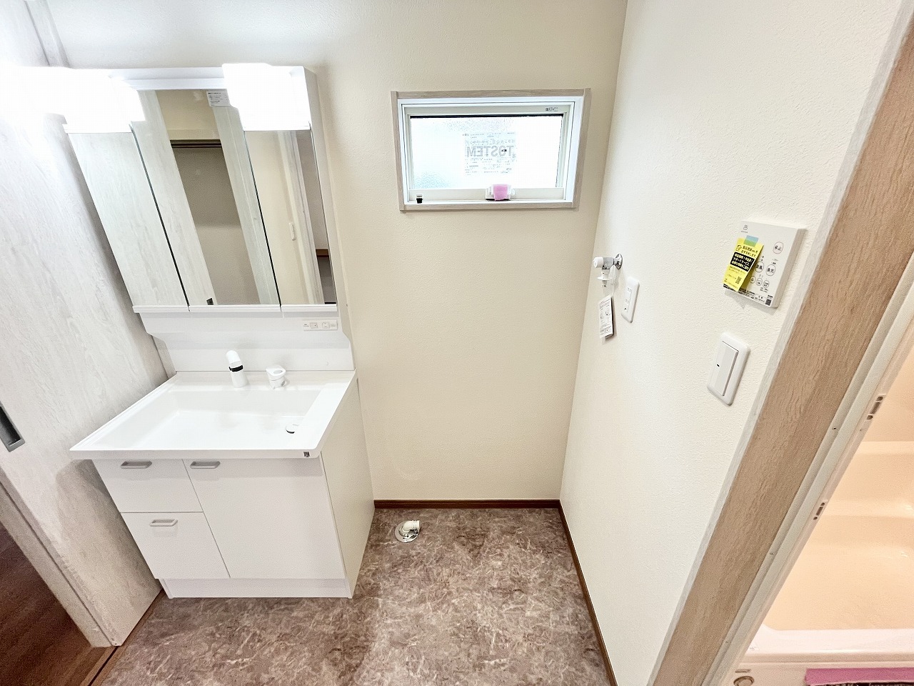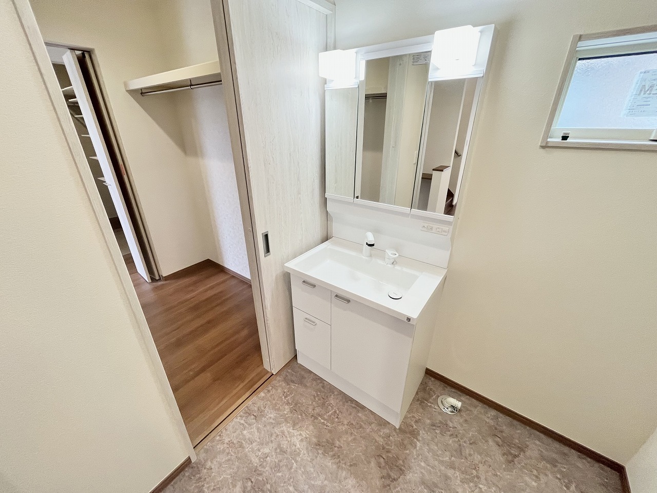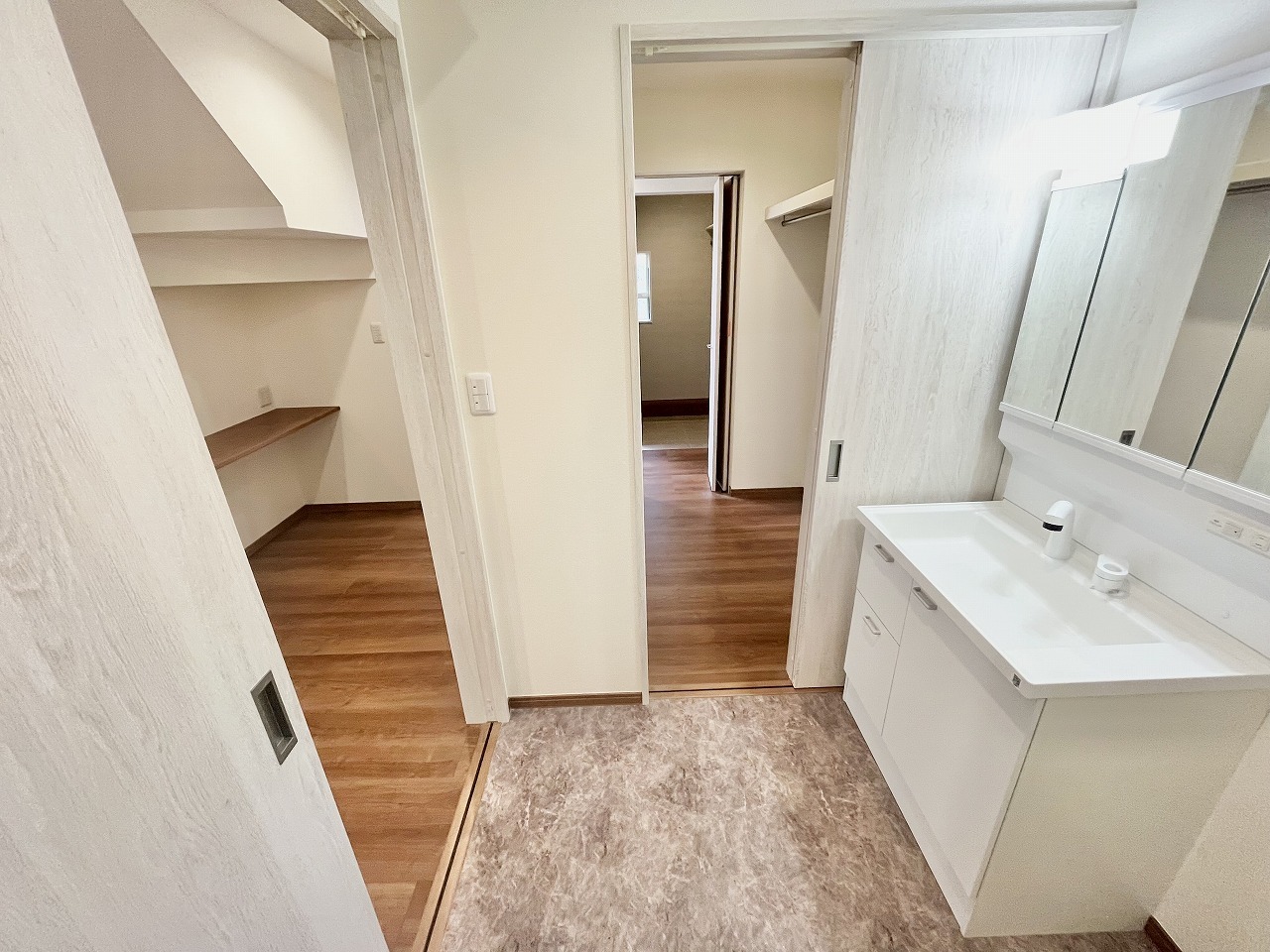 清潔感あふれる洗面空間と、広々とした収納スペースが魅力です。