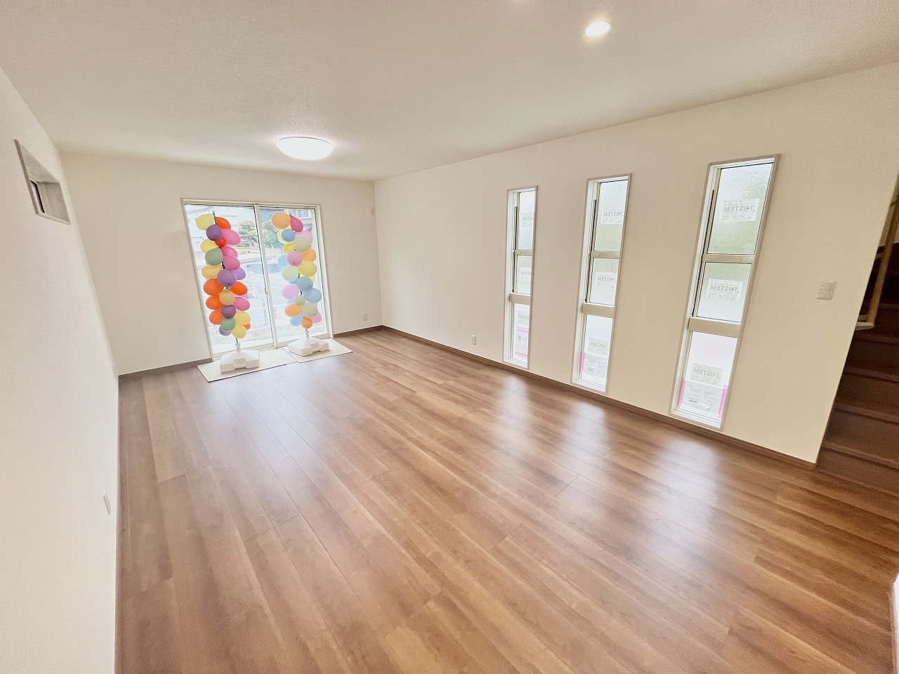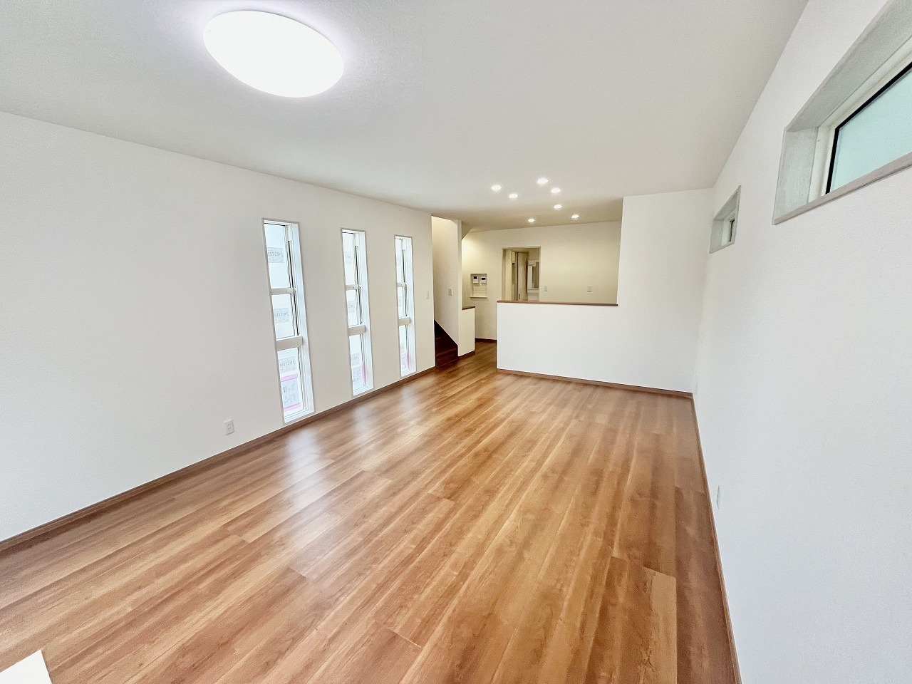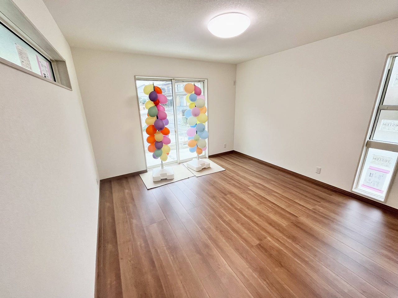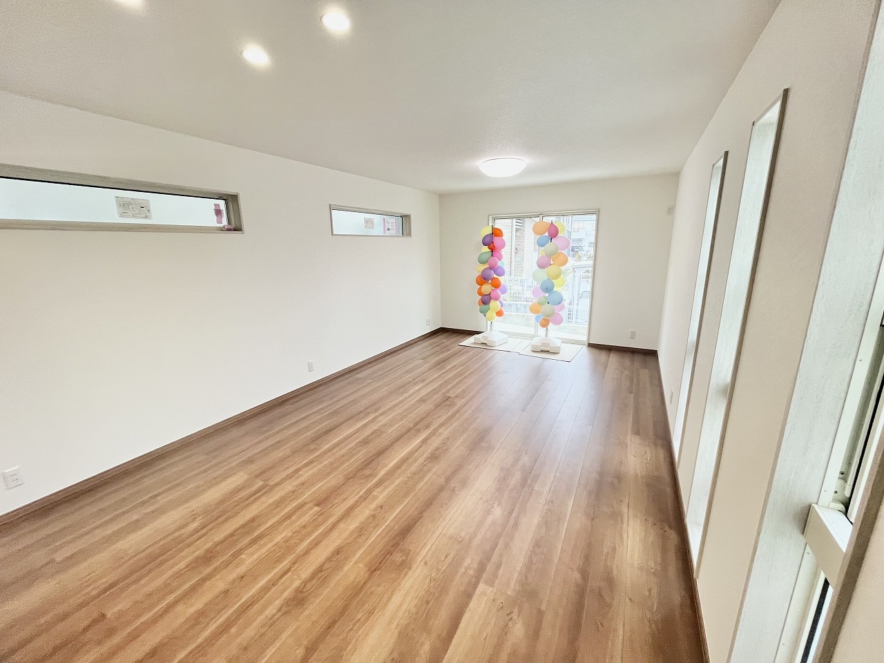 窓から広がる開放感と、温かみのある床材が心地よい空間