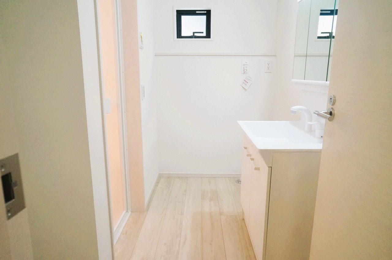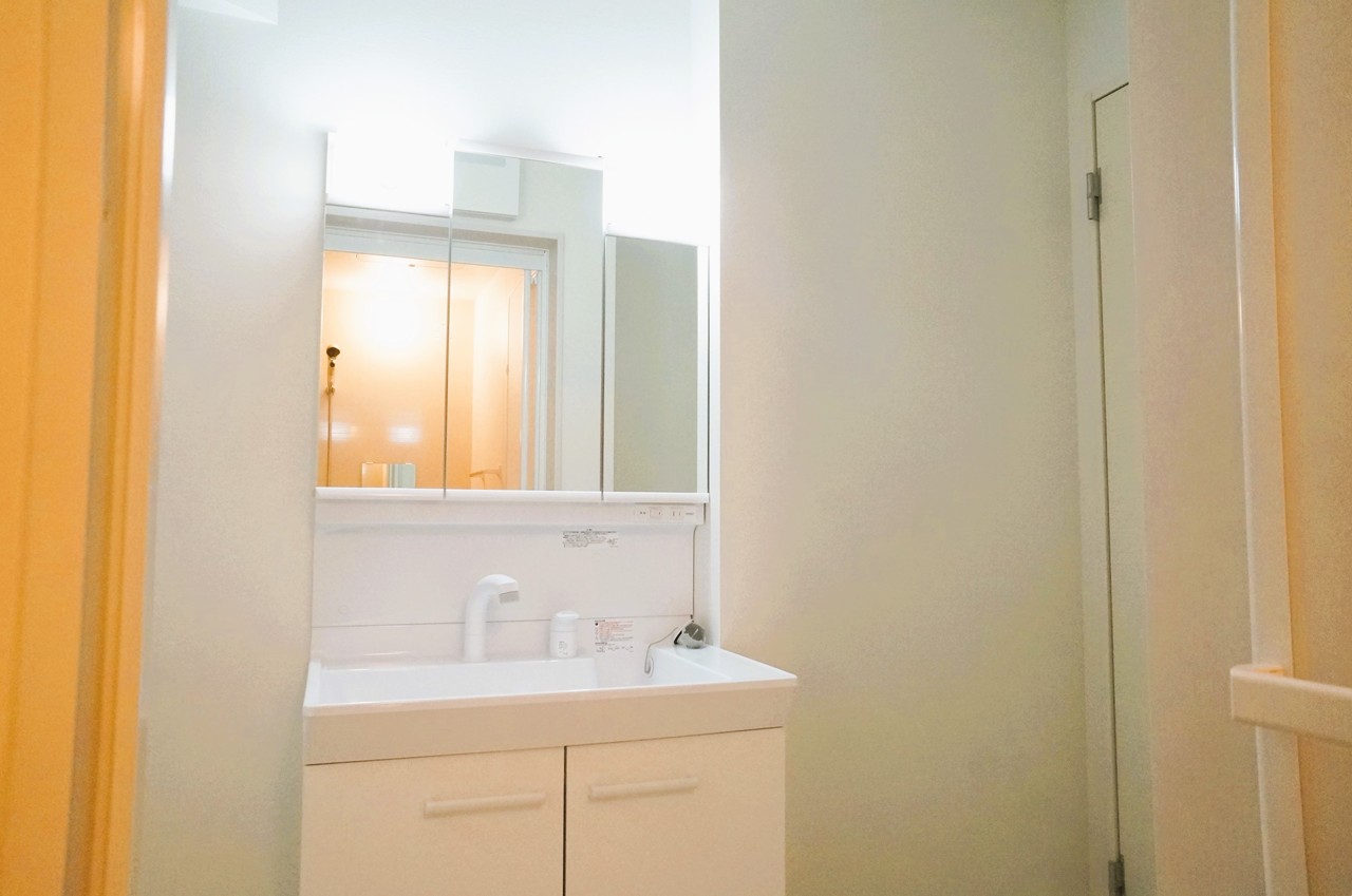 たっぷりの収納を設けたシャワー付洗面台で快適な暮らし。