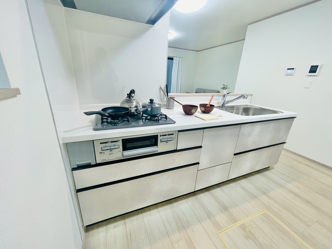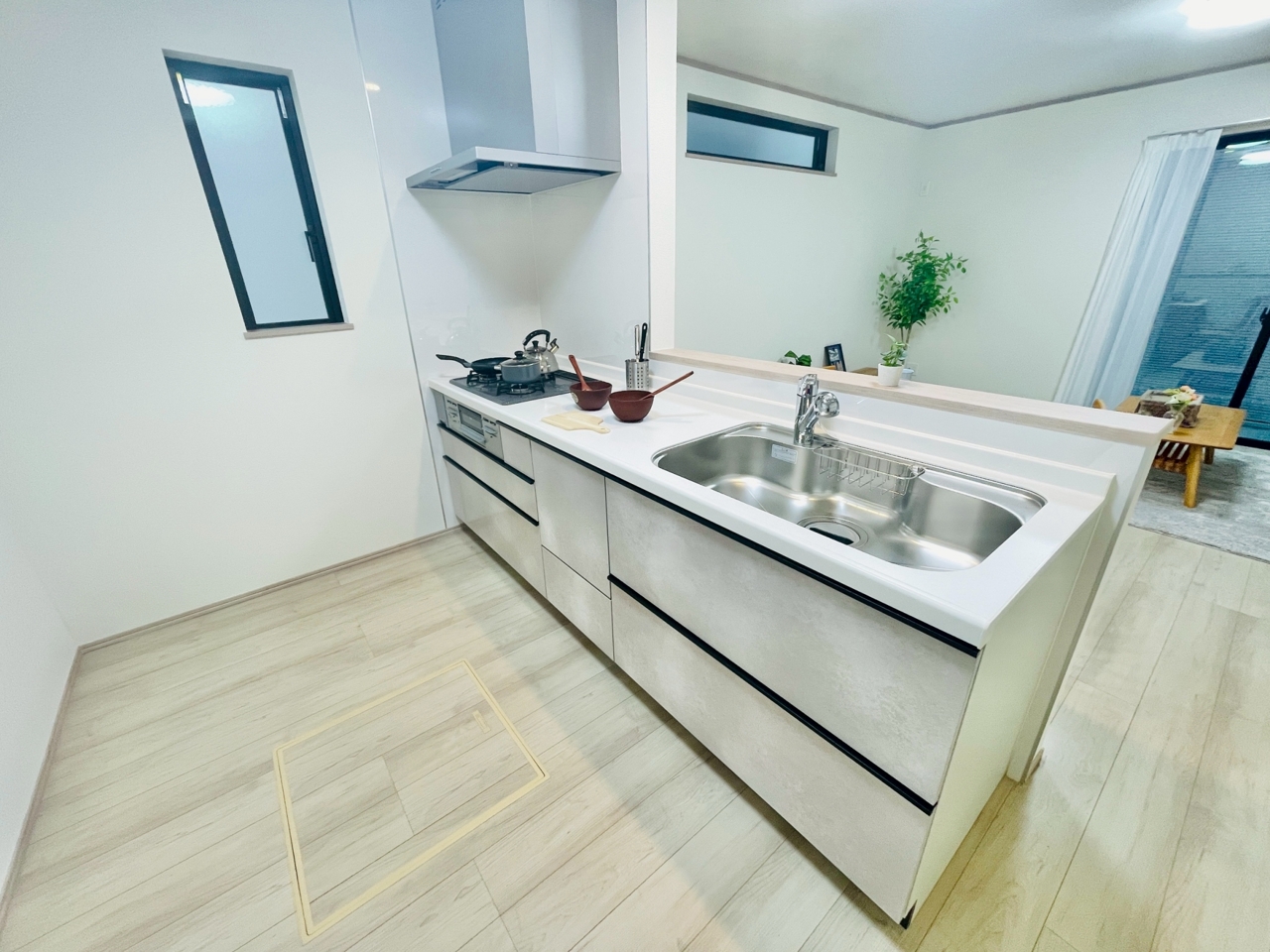 平坦地緑豊かな住宅地閑静な住宅地南側道路南向き全室2面採光床下収納複層ガラスウォークインクローゼット浴室1坪以上ロフトシステムキッチン温水洗浄便座カウンターキッチントイレ2ヶ所全居室フローリング浄水器ガスコンロ3口以上コンロシャワー付洗面台浴室乾燥機浴室暖房追焚機能浴室に窓オートバスTVモニタ付インターホン小学校800m以内陽当り良好保育園・幼稚園800m以内スーパー400m以内