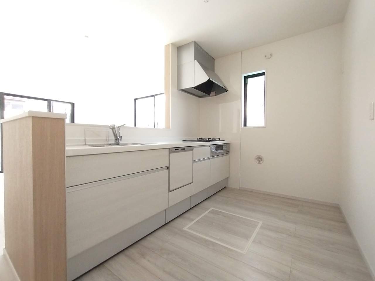 リビングで遊ぶお子様を見守りながらお料理ができる、対面キッチン。