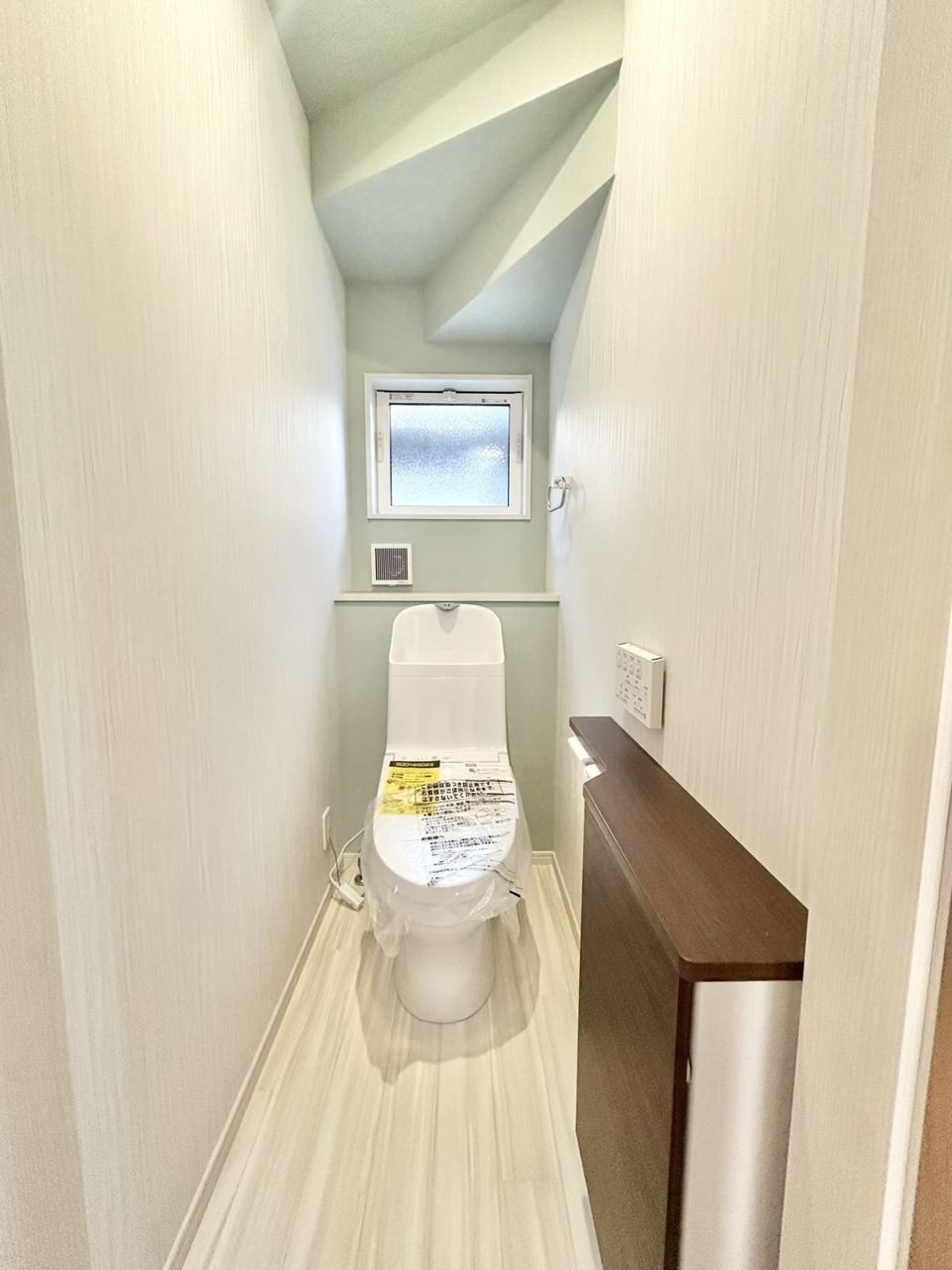 もちろんウォシュレット機能付き。憩いの場としてひそかに注目度の高いお手洗いにもご注目ください。
