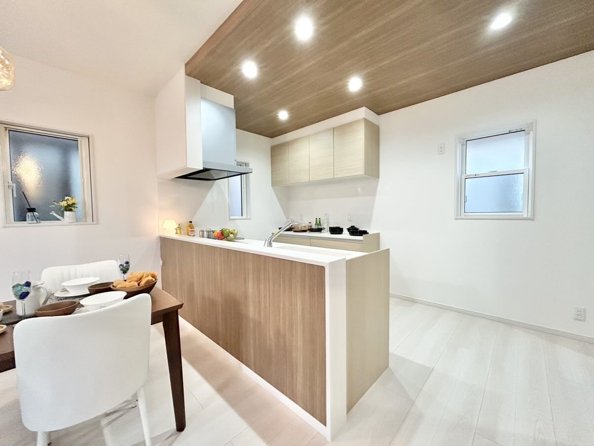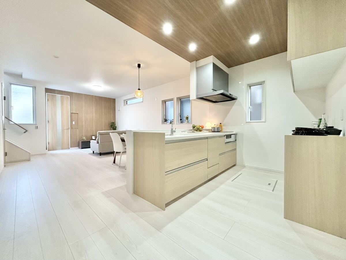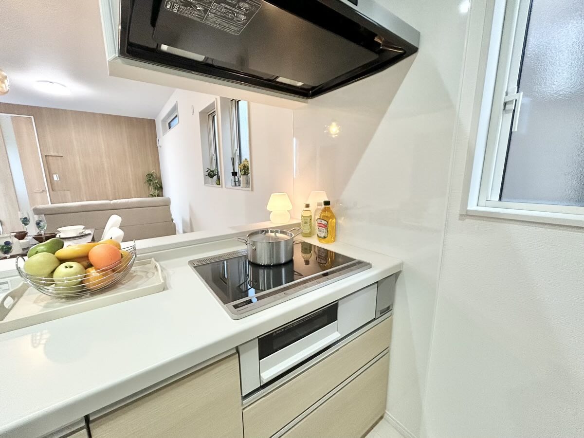 リビングで遊ぶお子様を見守りながらお料理ができる、対面キッチン。