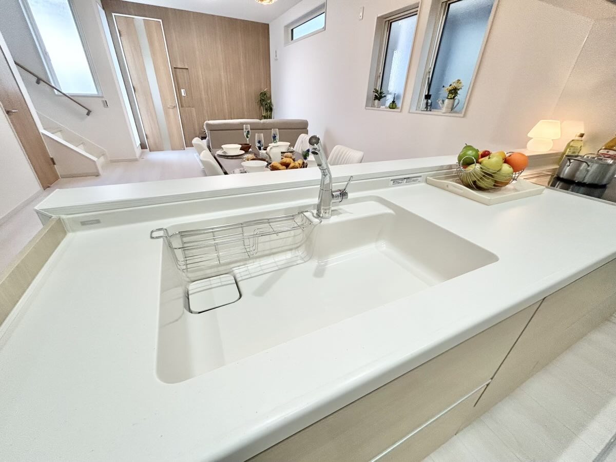 シンクはカウンターと合わせた白。清潔感がUPしますね。