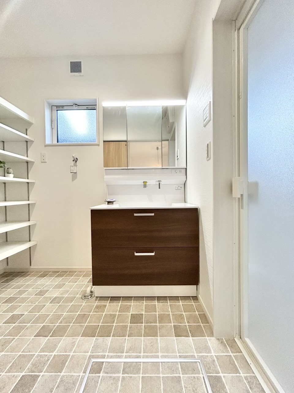 収納力と機能性に優れた、お手入れラクラク洗面化粧台。