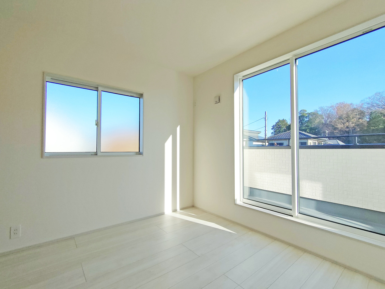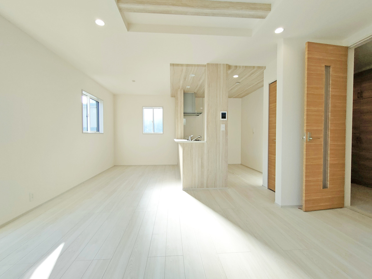 新築の木の匂いのする室内。写真では伝わらないので、ぜひ現地でお確かめください。