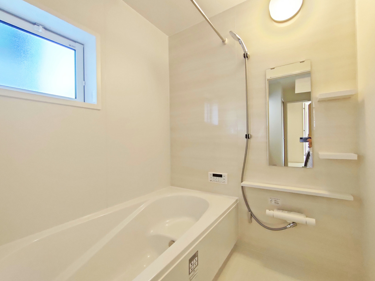 広々1坪タイプのゆったり浴室ユニット。防カビ・抗菌素材なのもうれしい。