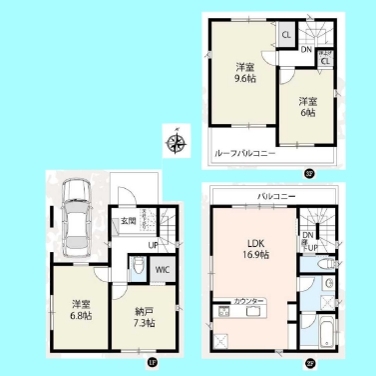 | 間取 | 3LDK+1S (LDK16.9帖、洋室9.6帖、洋室6.8帖、洋室6帖、S7.3帖) | ||