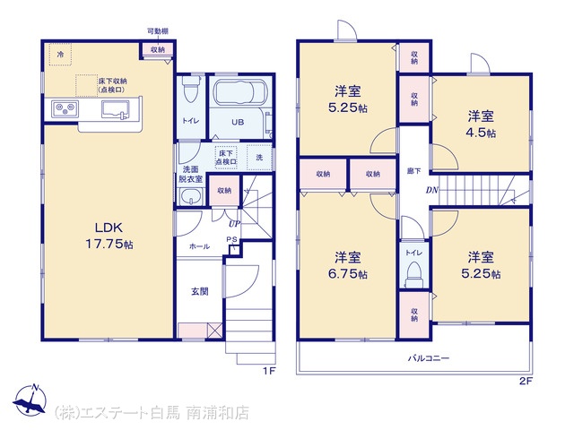 | 間取 | 4LDK (LDK17.75帖、洋室6.75帖、洋室5.25帖、洋室5.25帖、洋室4.5帖) | ||