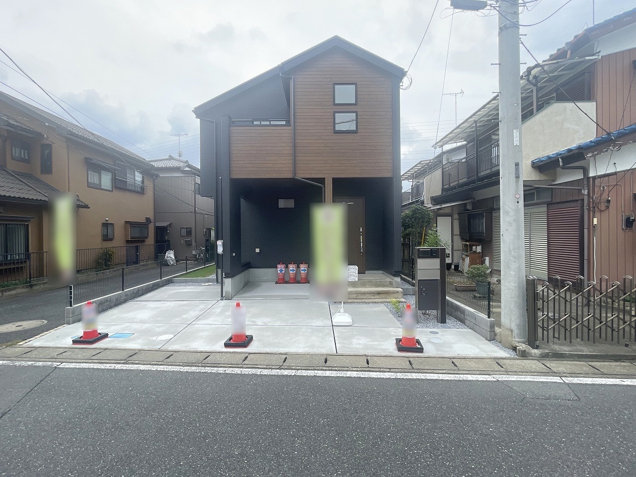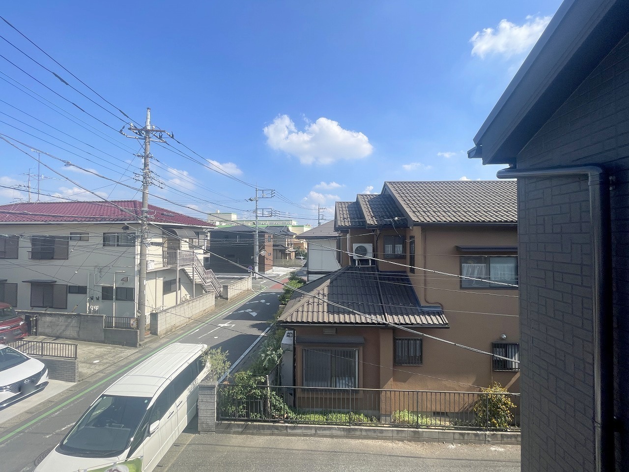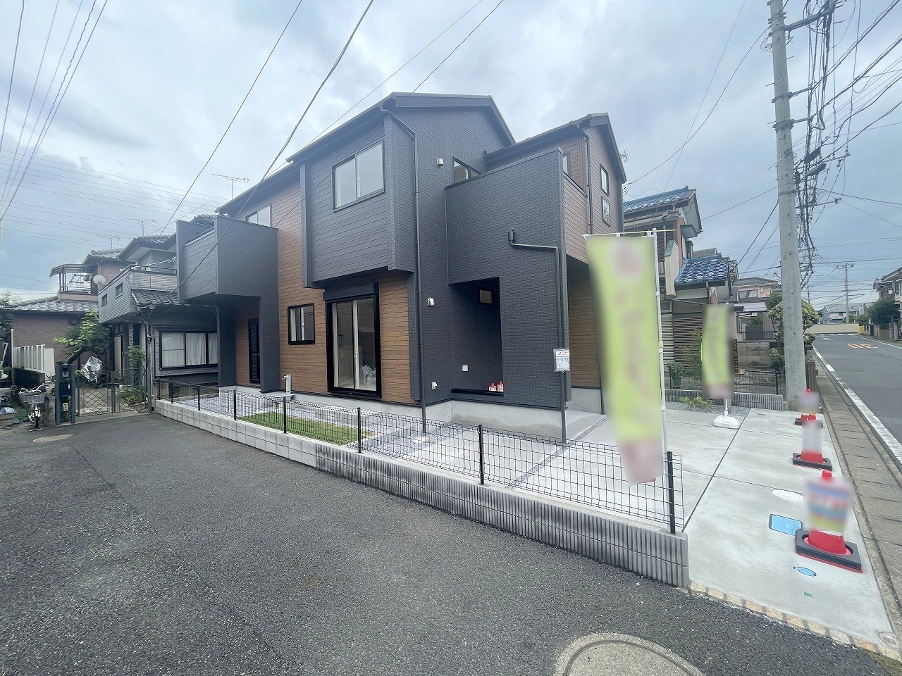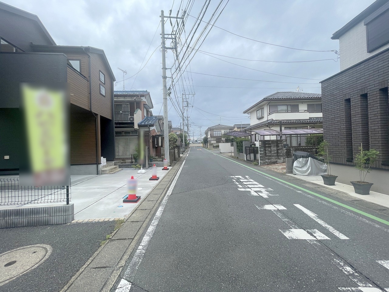 住宅街の中の一戸建て、あたりはほとんど住宅です。